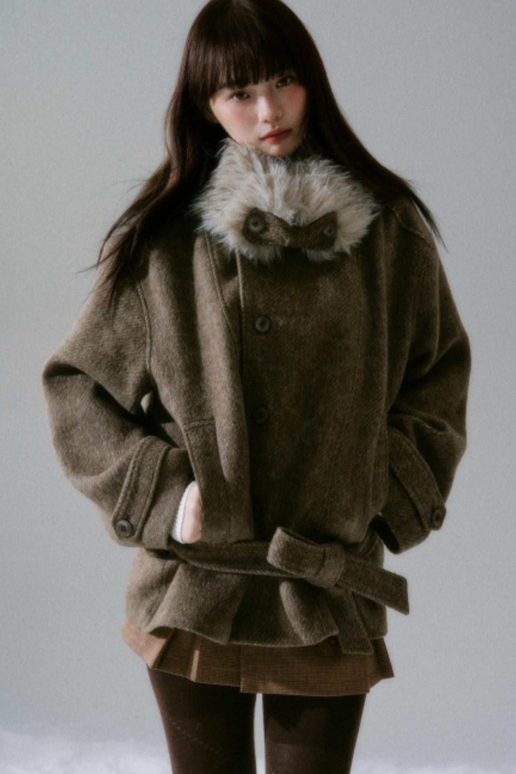 Bow Fur Collar Wool Coat