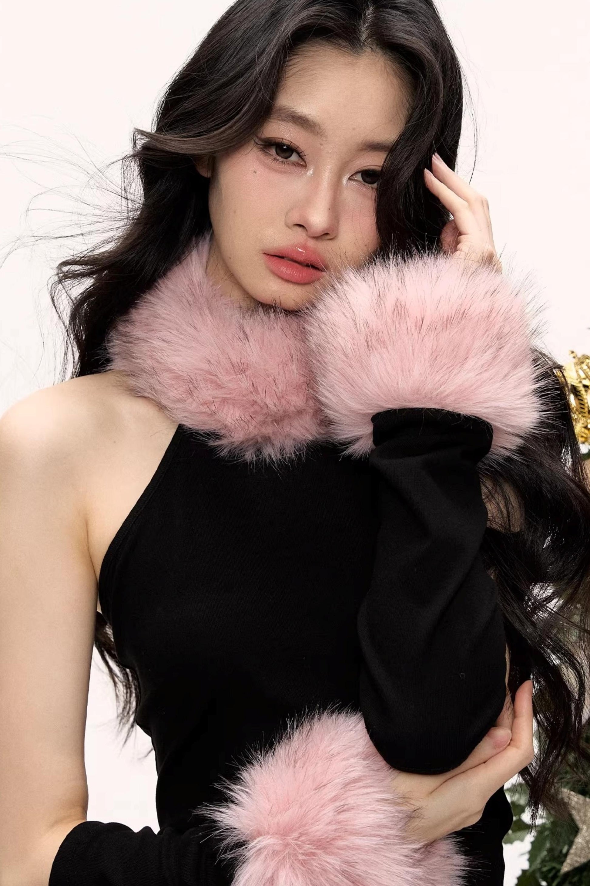 Color-Blocked Fur Collar Vest