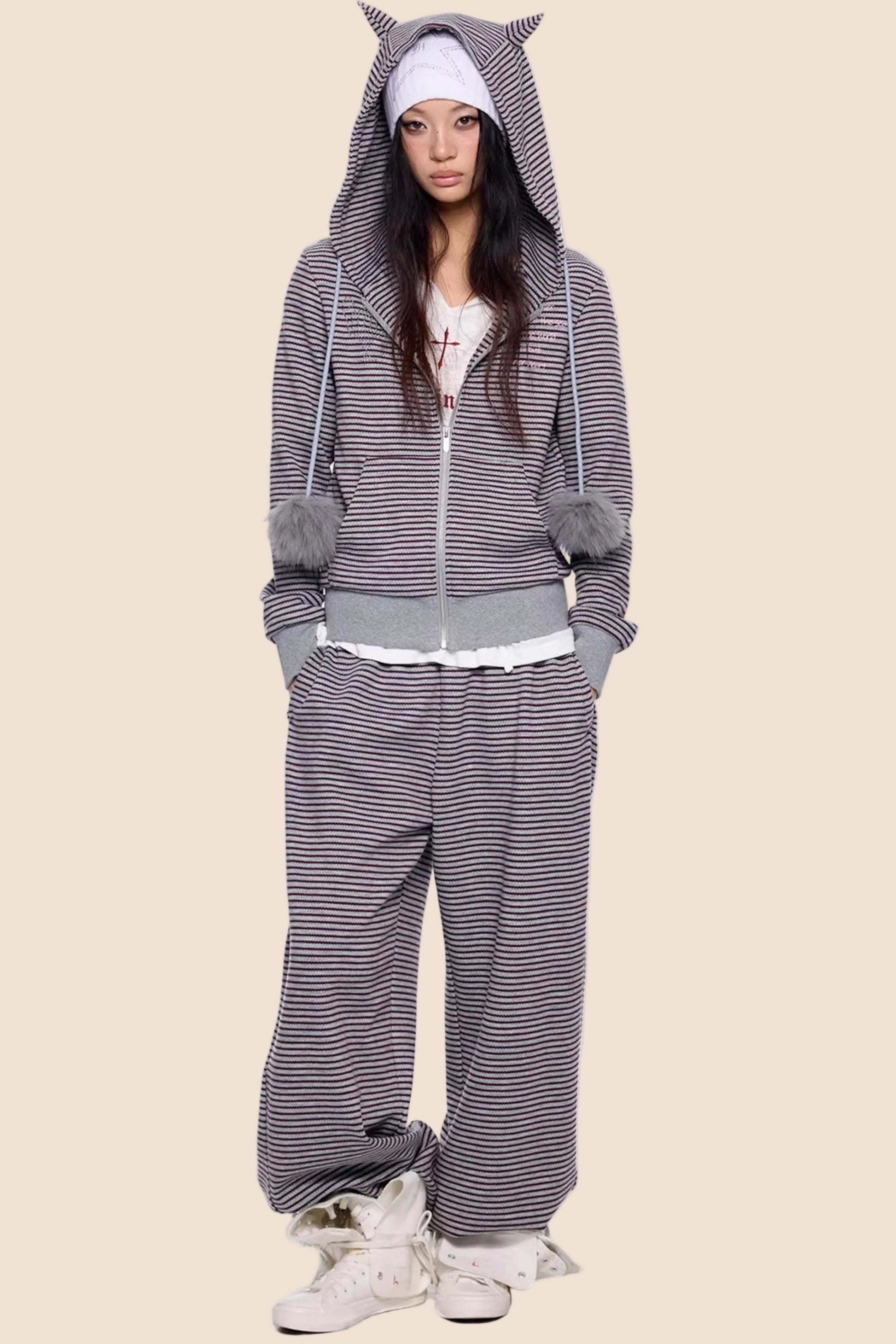 Devil Striped Hooded Jacket Set-Up