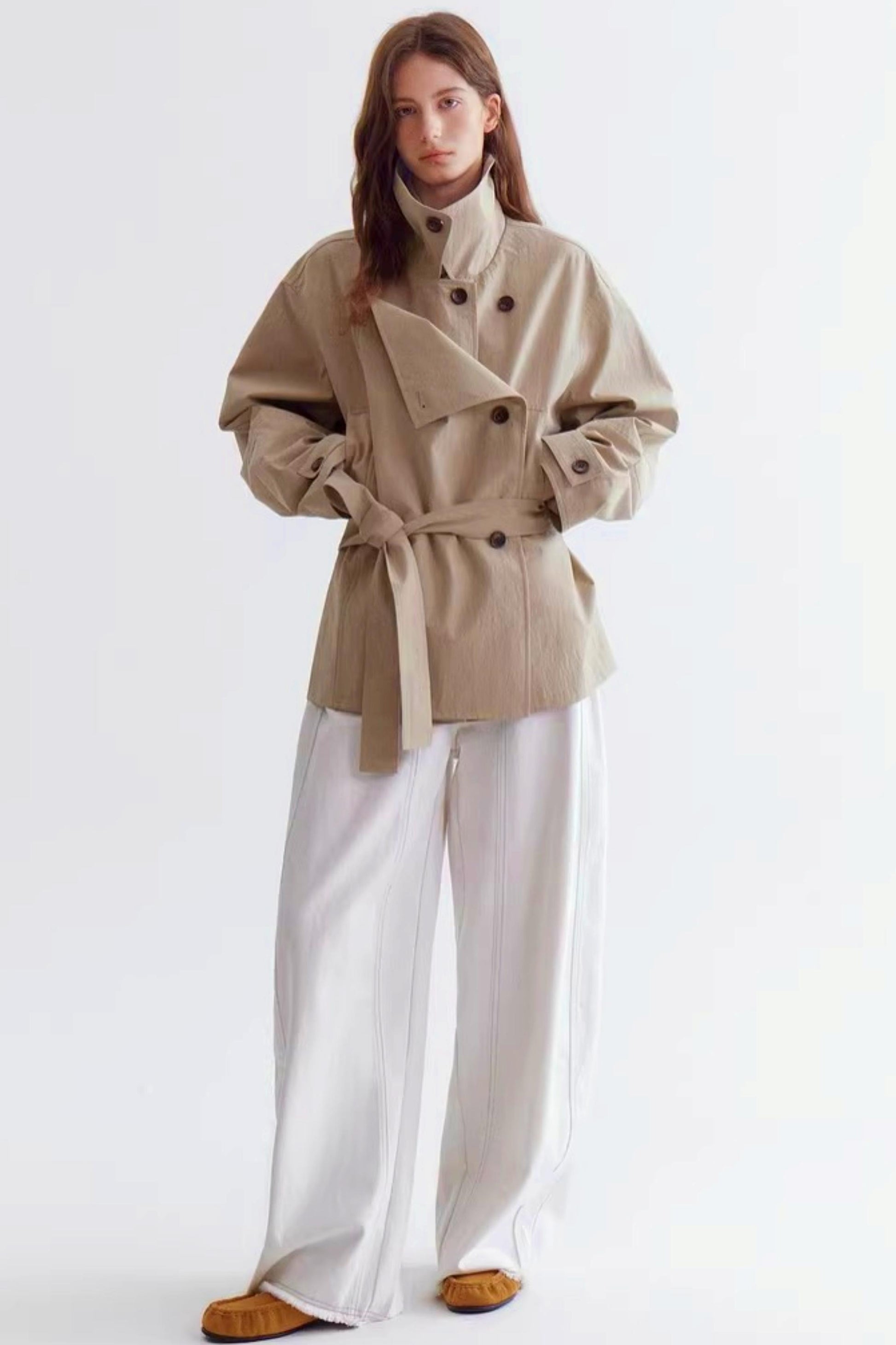 Double-Breasted Lace-Up Trench Coat