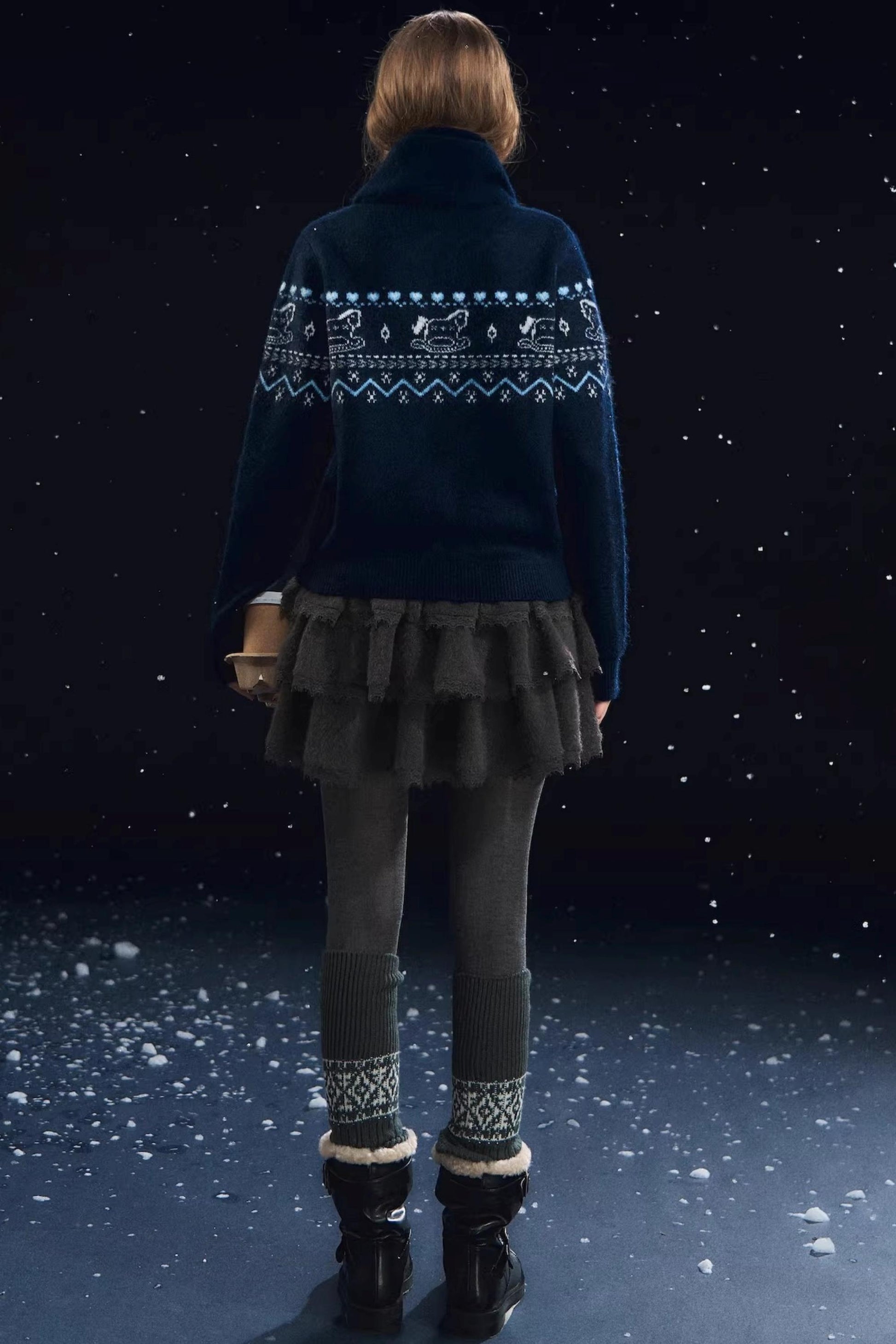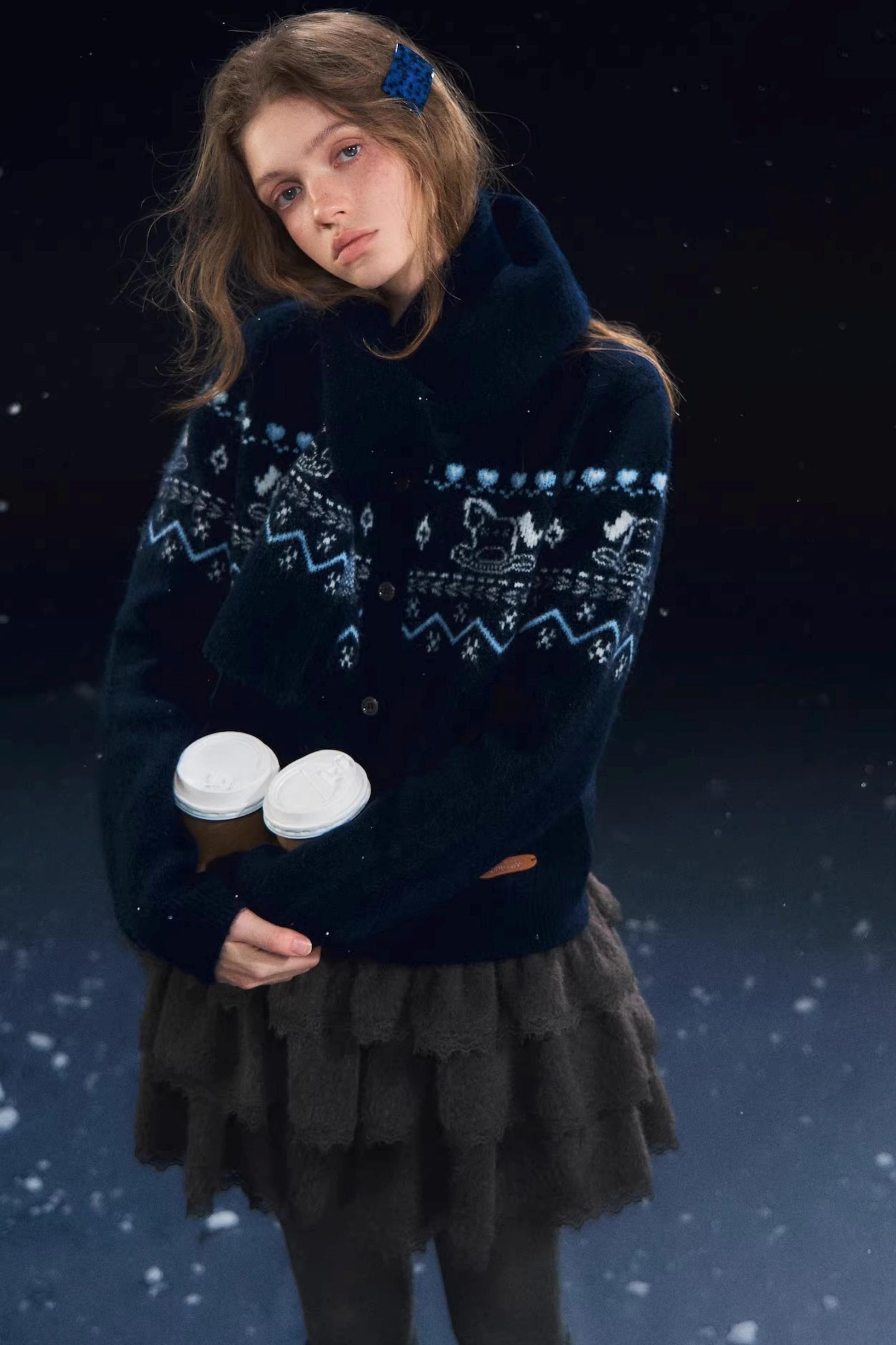Fair Isle Scarf Cardigan Two-Piece Set