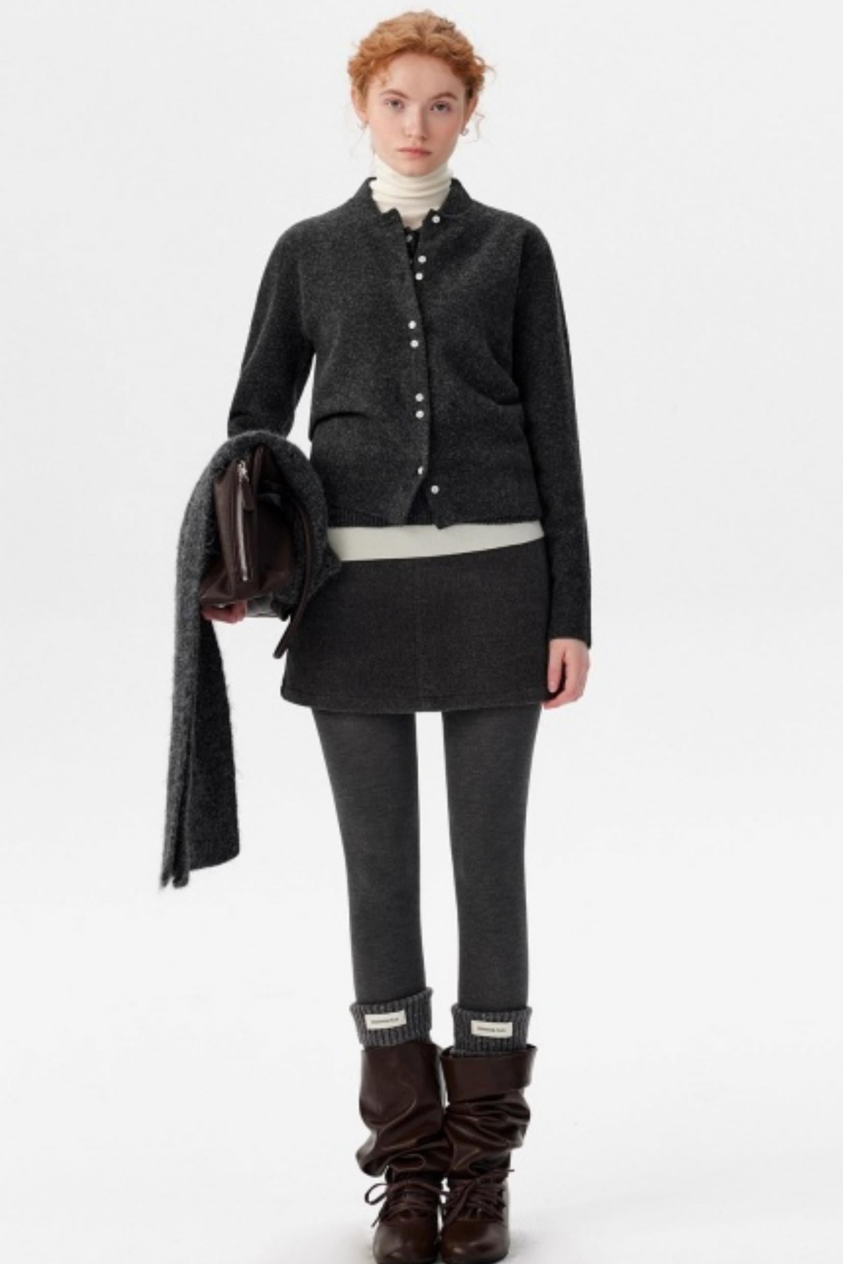Gray Woolen A-Line Skirt