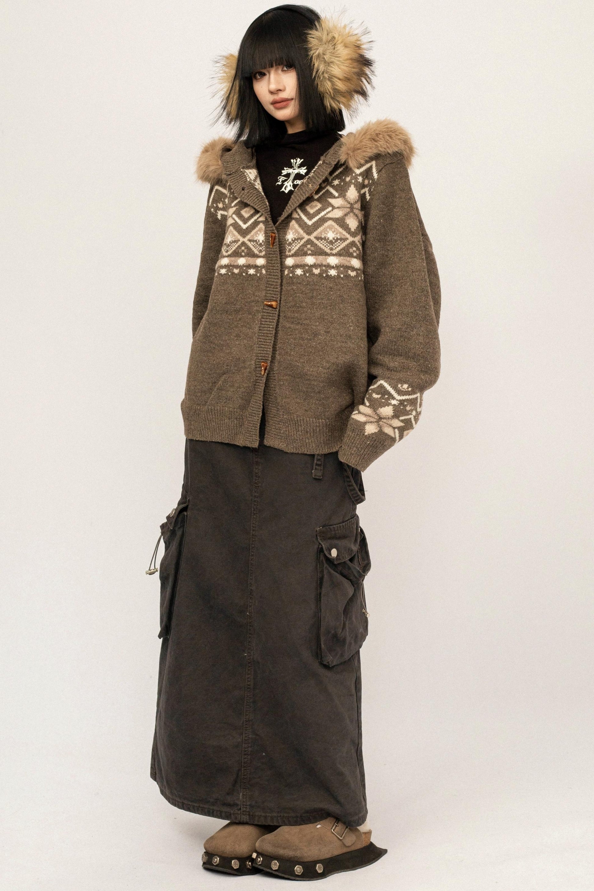Hooded Fair Isle Cardigan