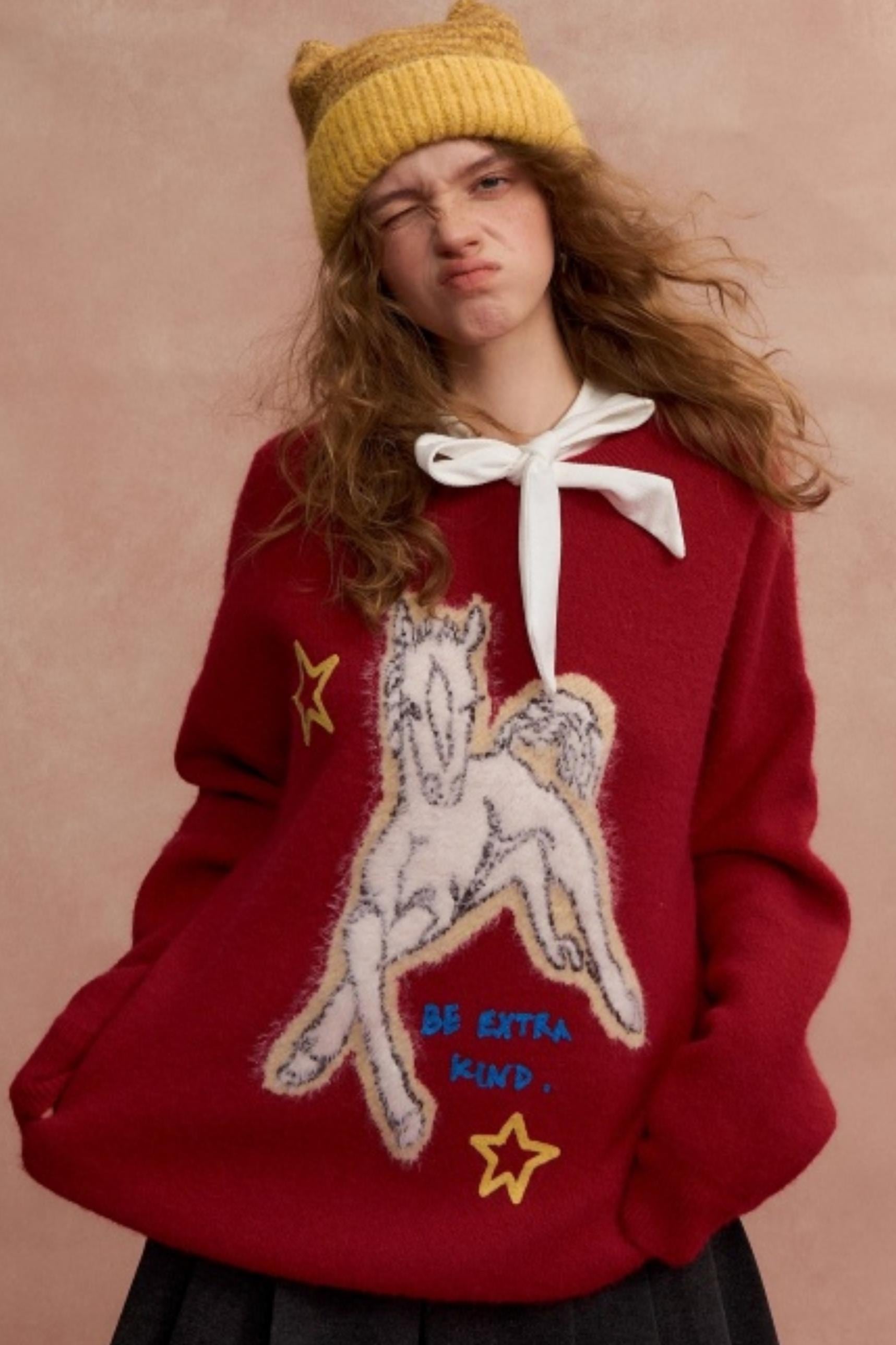 Jacquard Pony Crew Neck Sweater