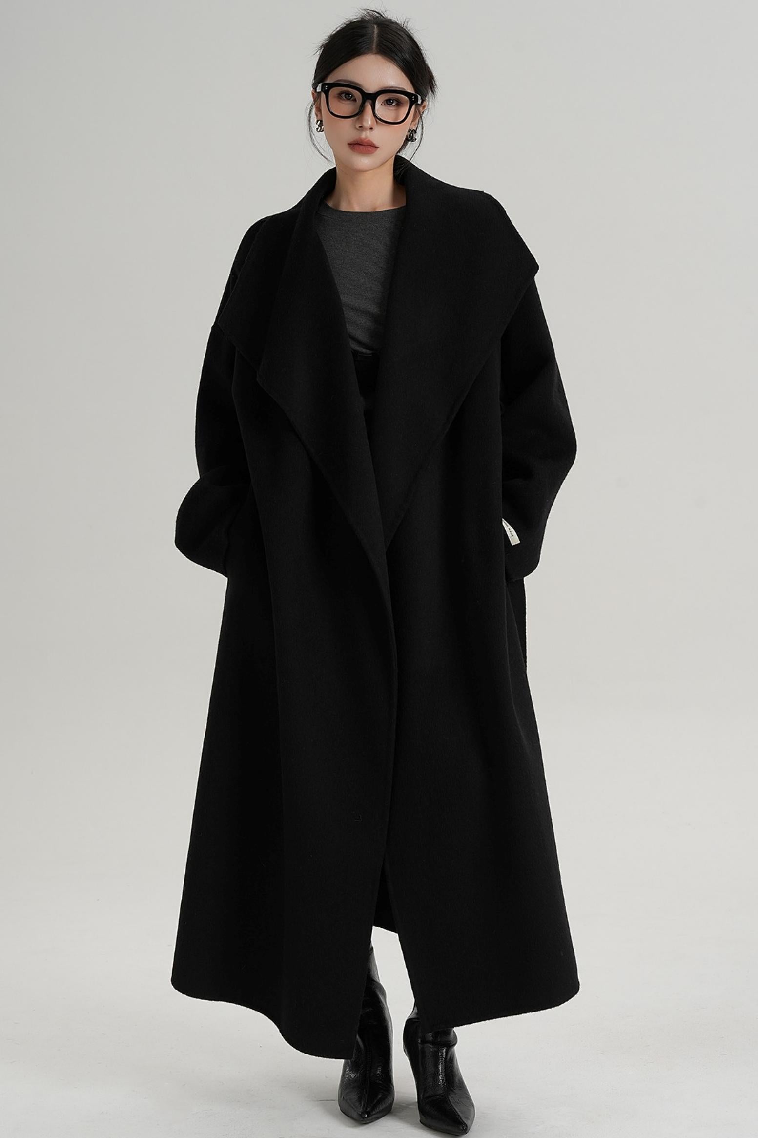 Large Lapel Long Wool Coat