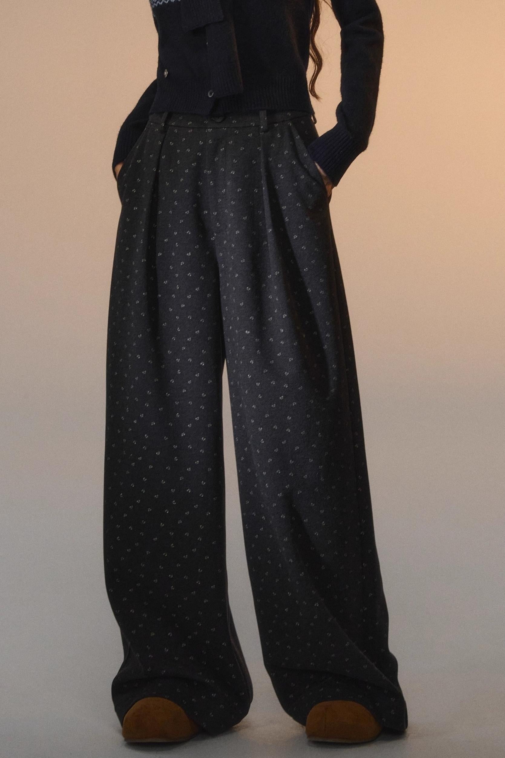 Printed Bow Woolen Trousers