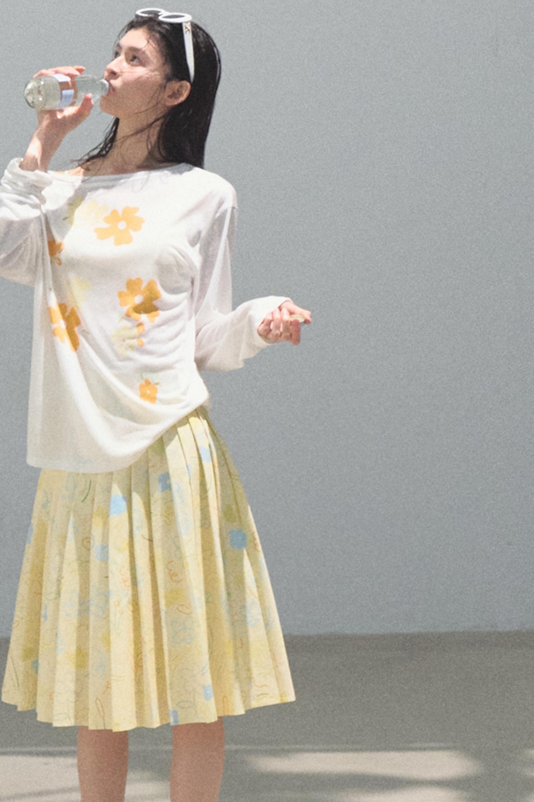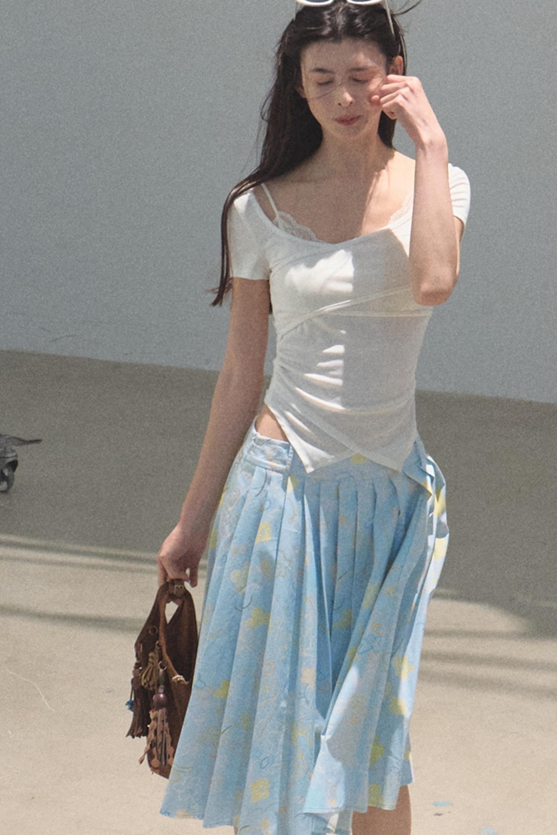 Running Waves Cotton Poplin Pleated Midi Skirt