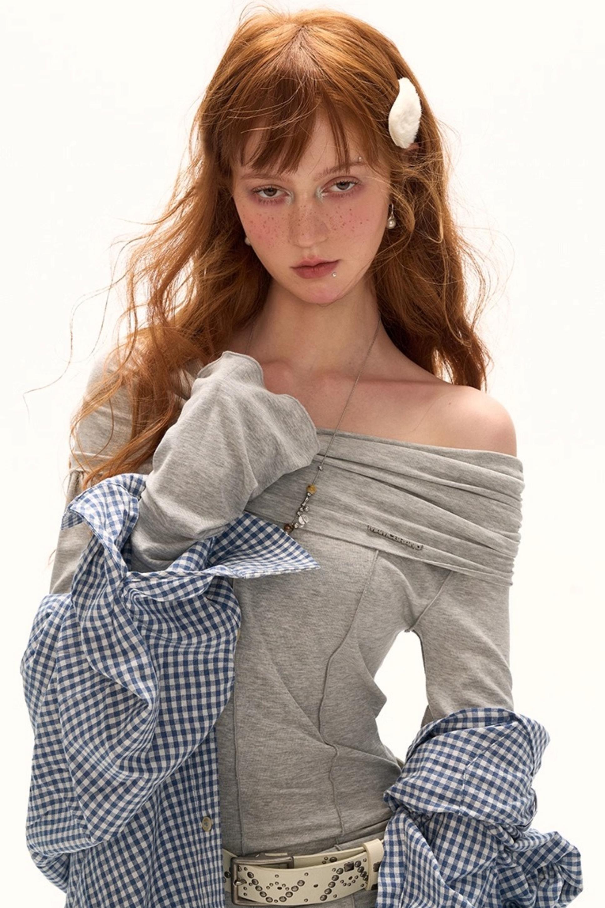 Slanted Pleated French Waist Long Sleeve Midi Dress