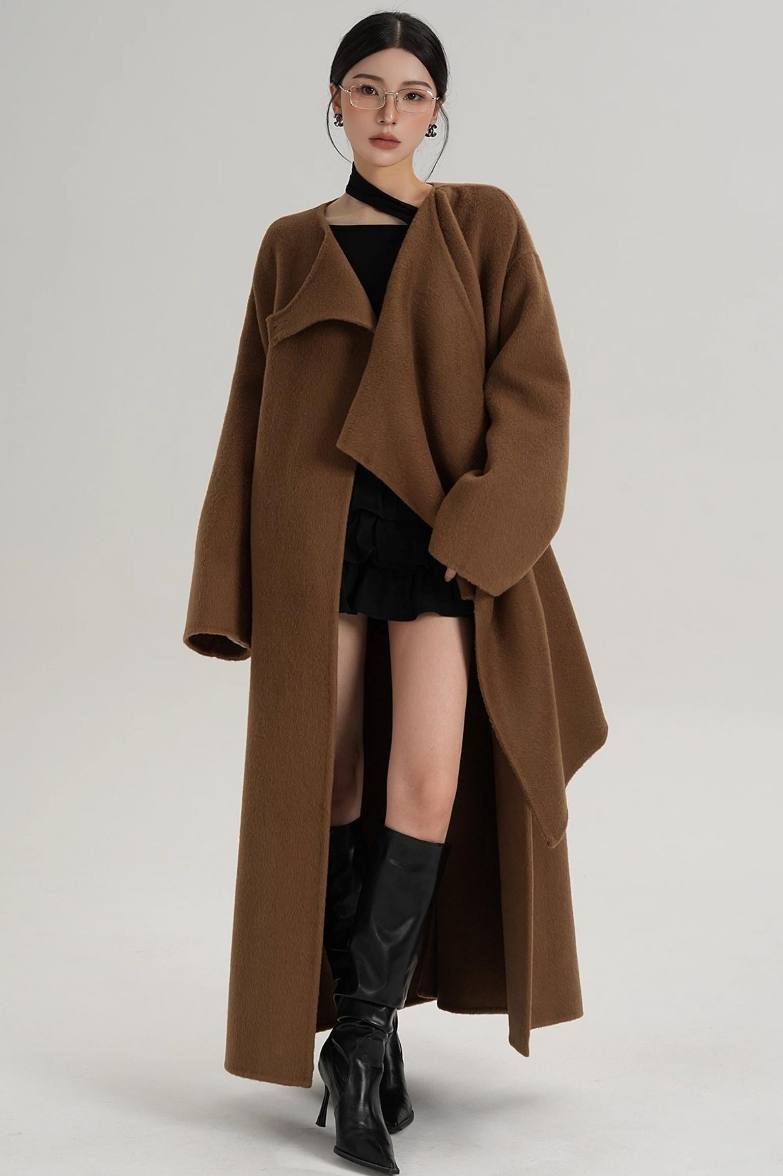 High-End Shawl Collar Wool Long Coat