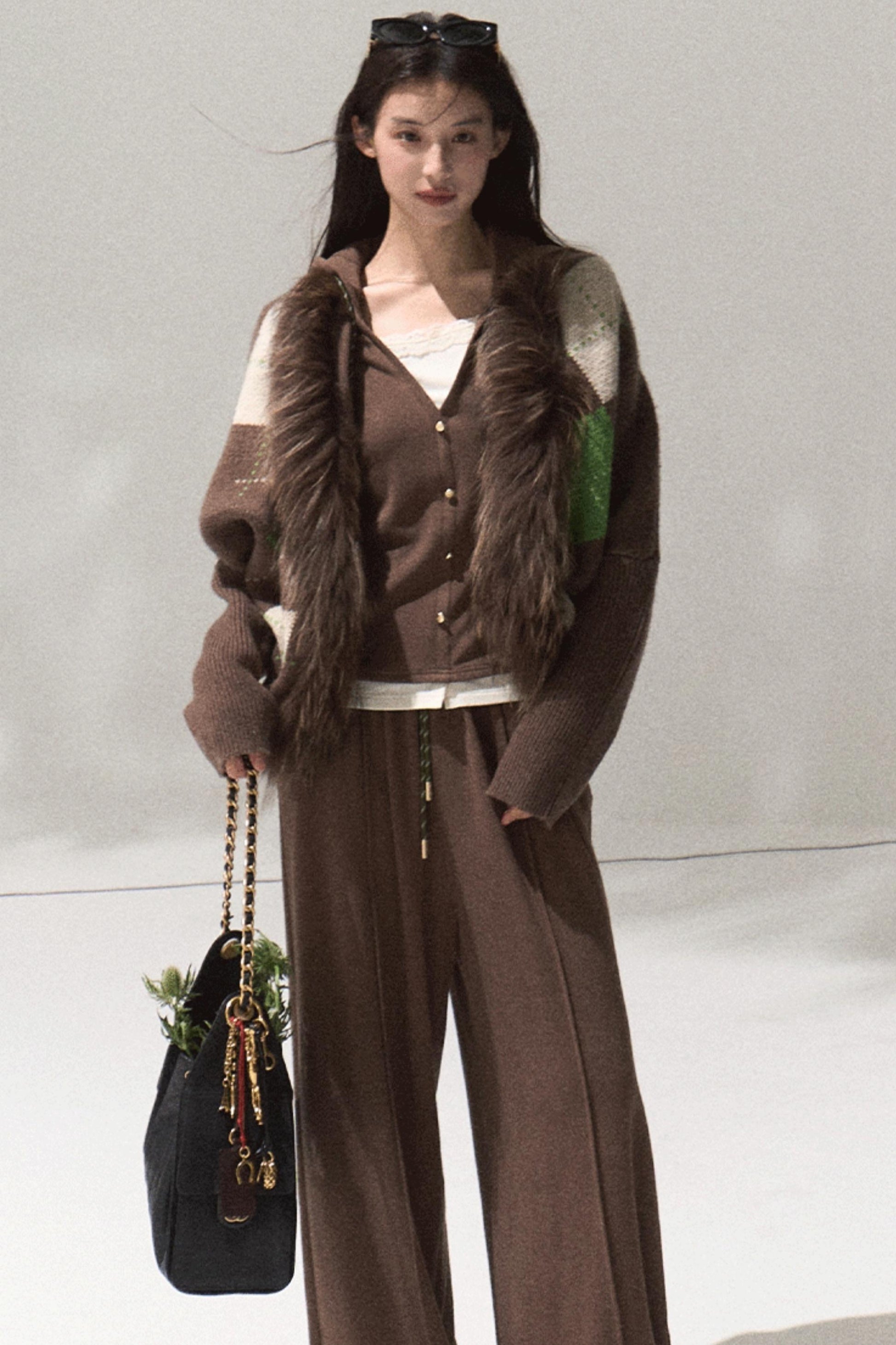 Tears Knit Top & Wide-Leg Pants Set-Up