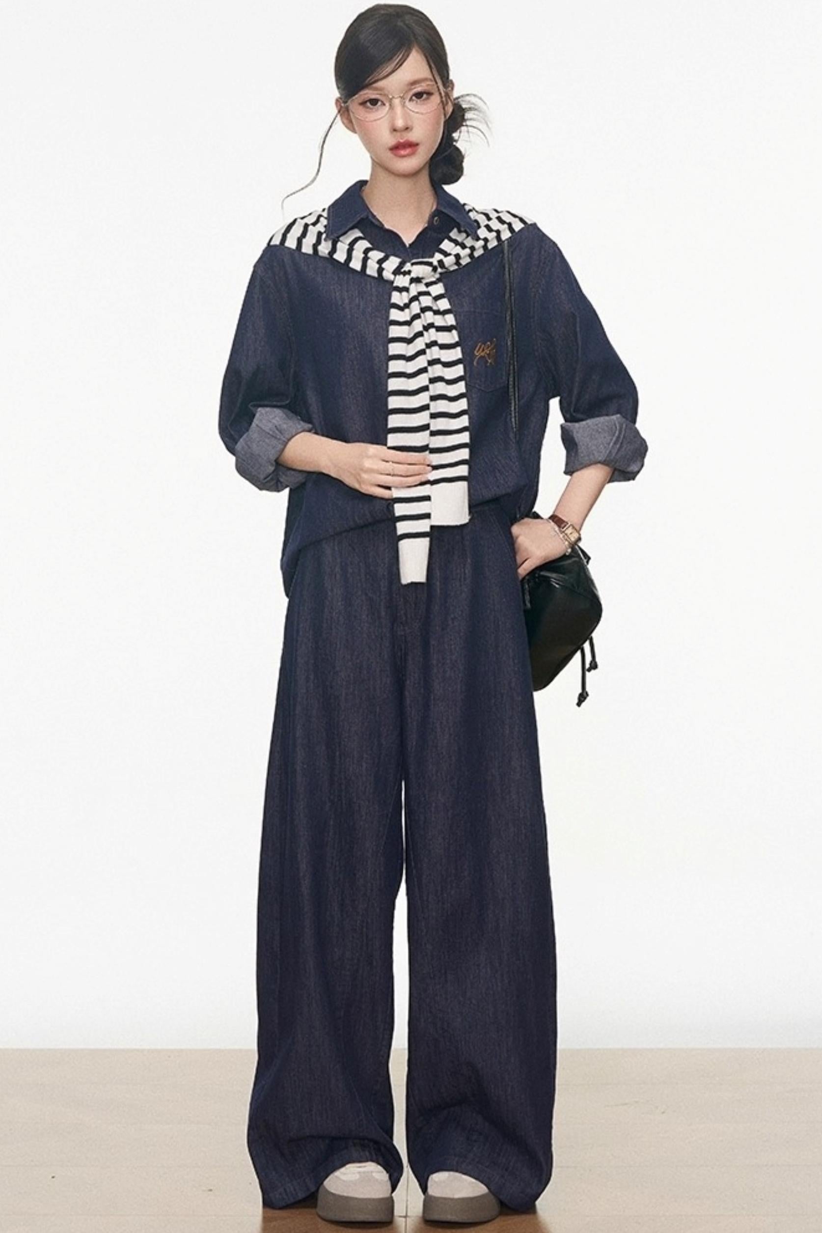 Tencel Denim Shirt With Shawl Set-Up