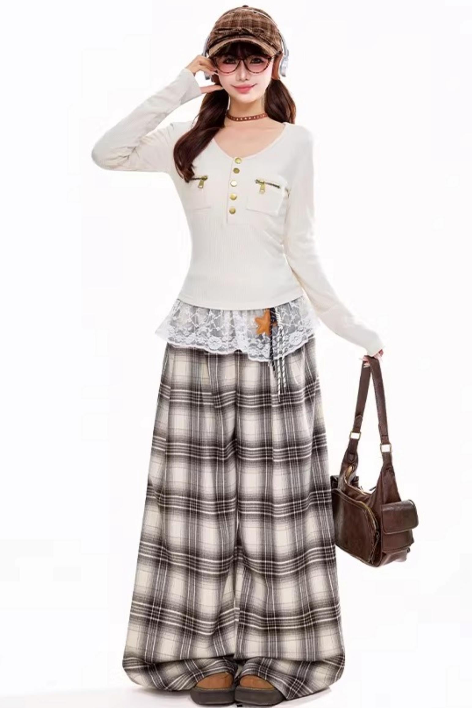 Zipper V-Neck Long-Sleeve Top