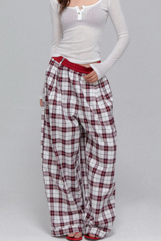 Fake Two-Piece Plaid Skirt