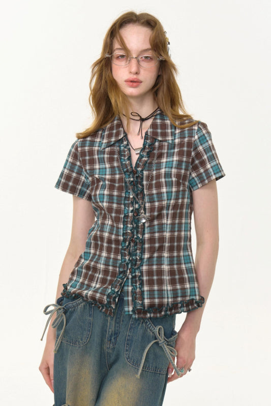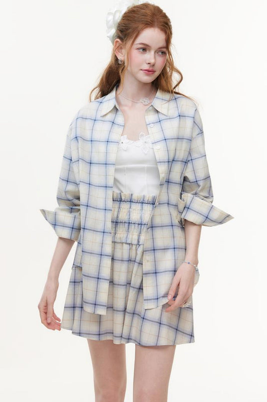 Preppy Puff Sleeve Striped Skirt Set-Up