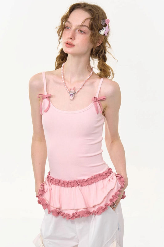 Ruffled Lace Bow Top
