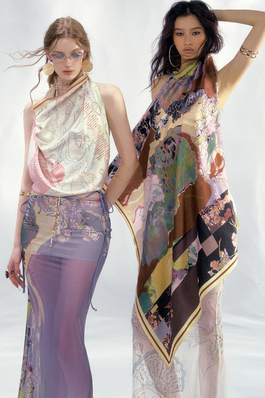 Lightweight Knit Shawl Turtleneck Sweater Set