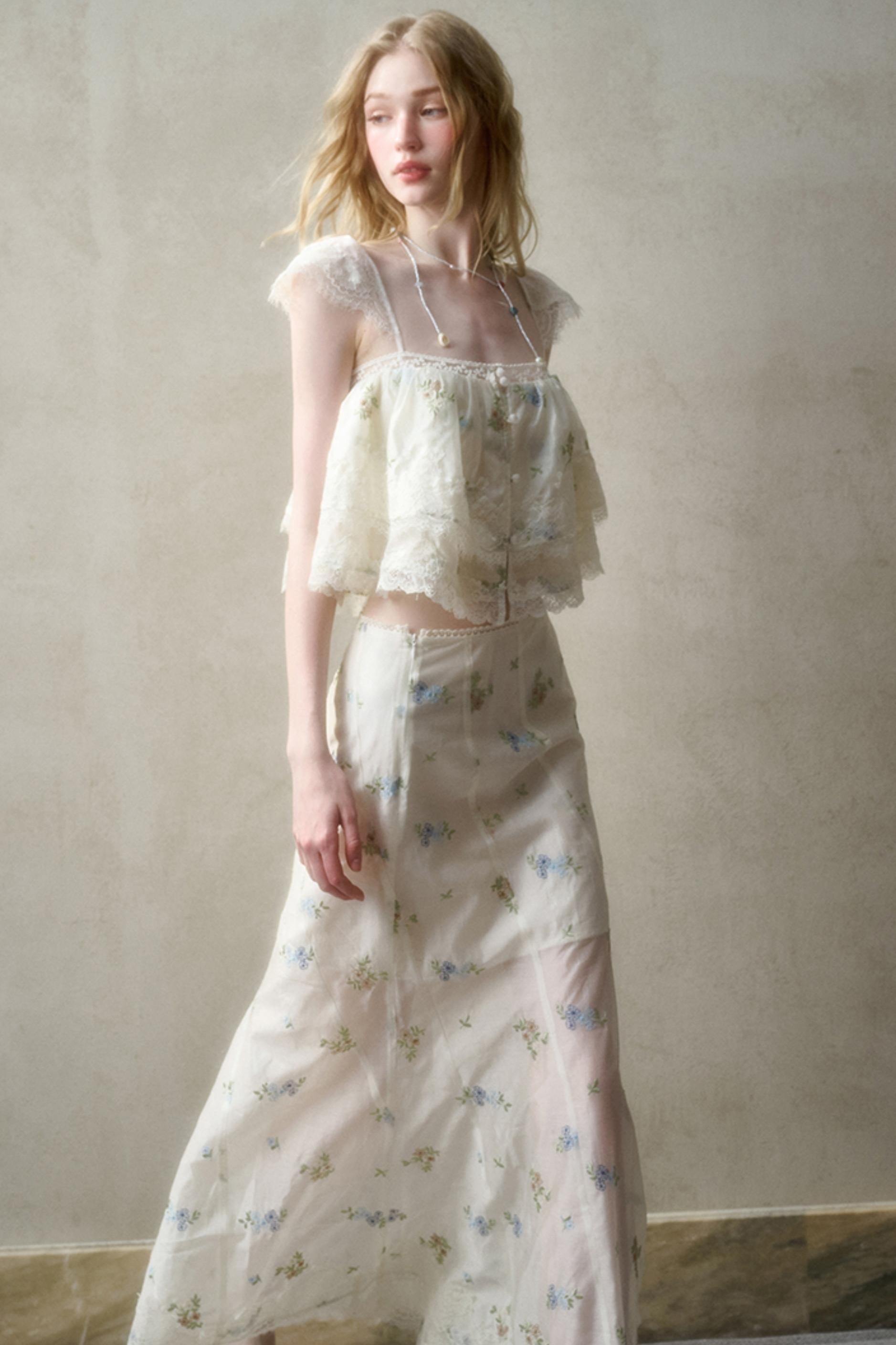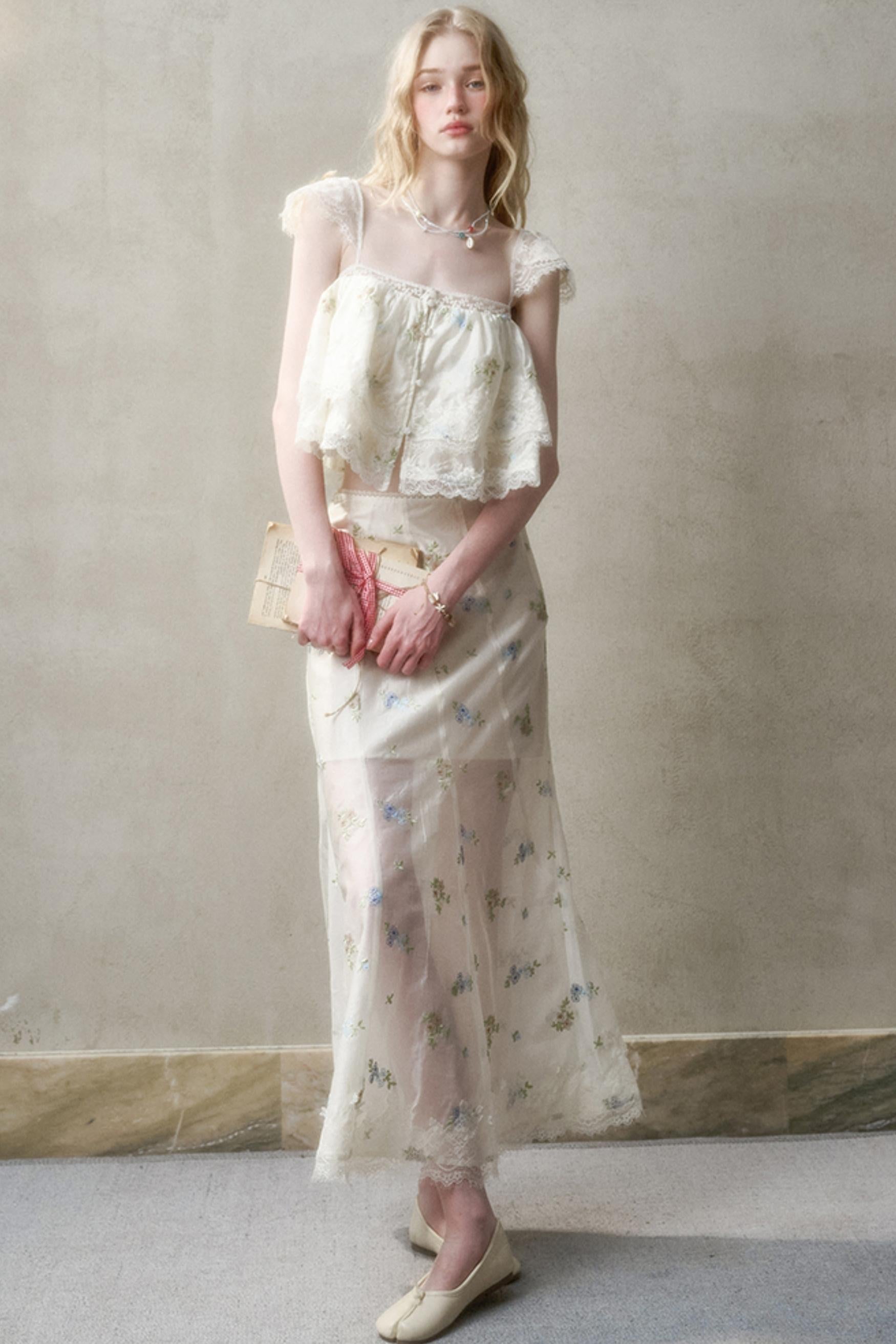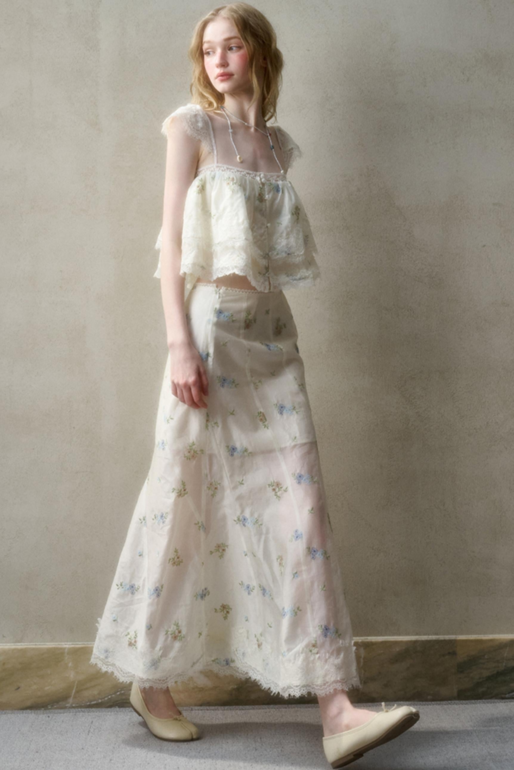 Airy Floral Ensemble Long Lace Skirt Set-Up