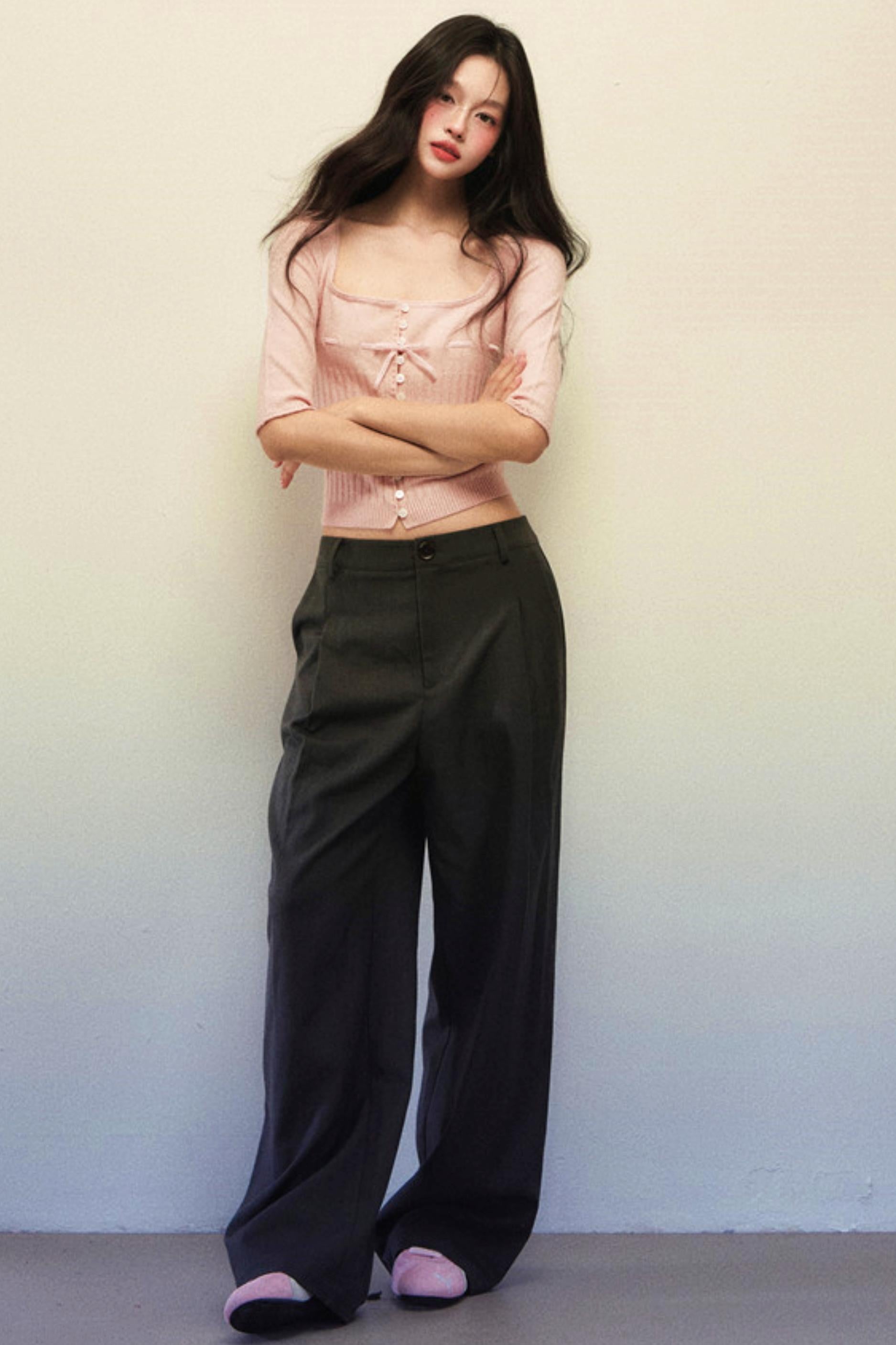 Apricot Pink Knitted Cardigan