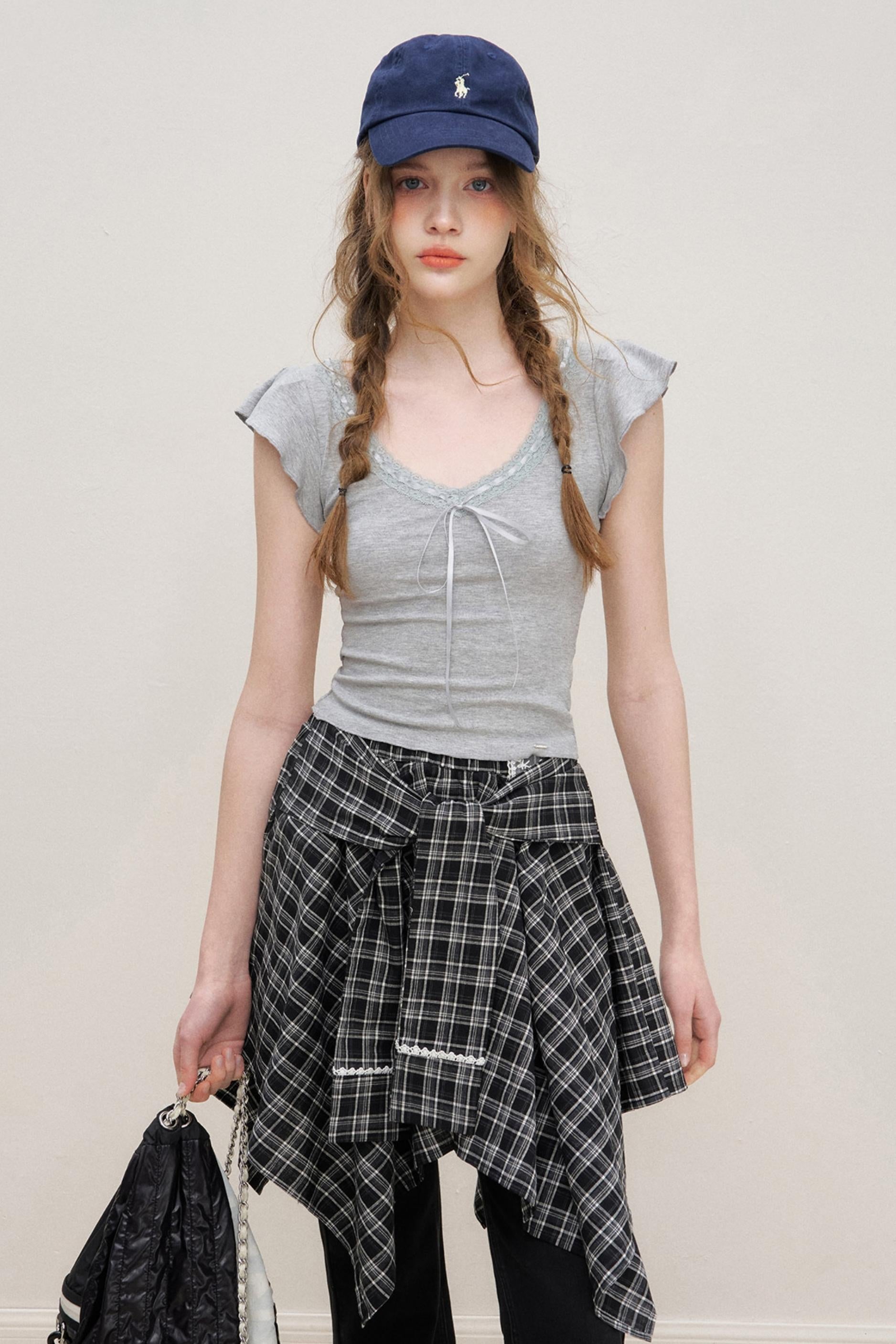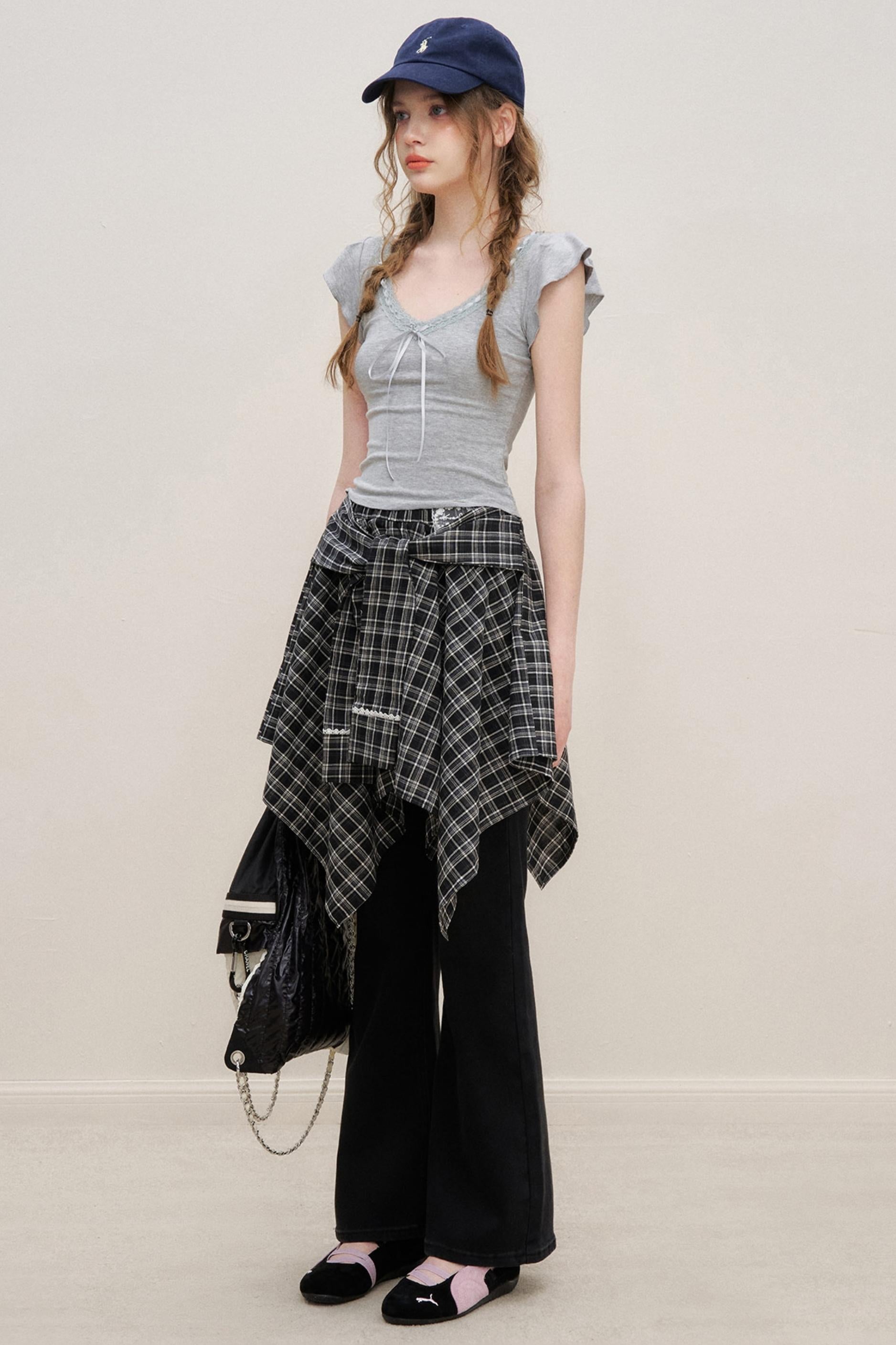 Asymmetrical Checkered Top- Skirt