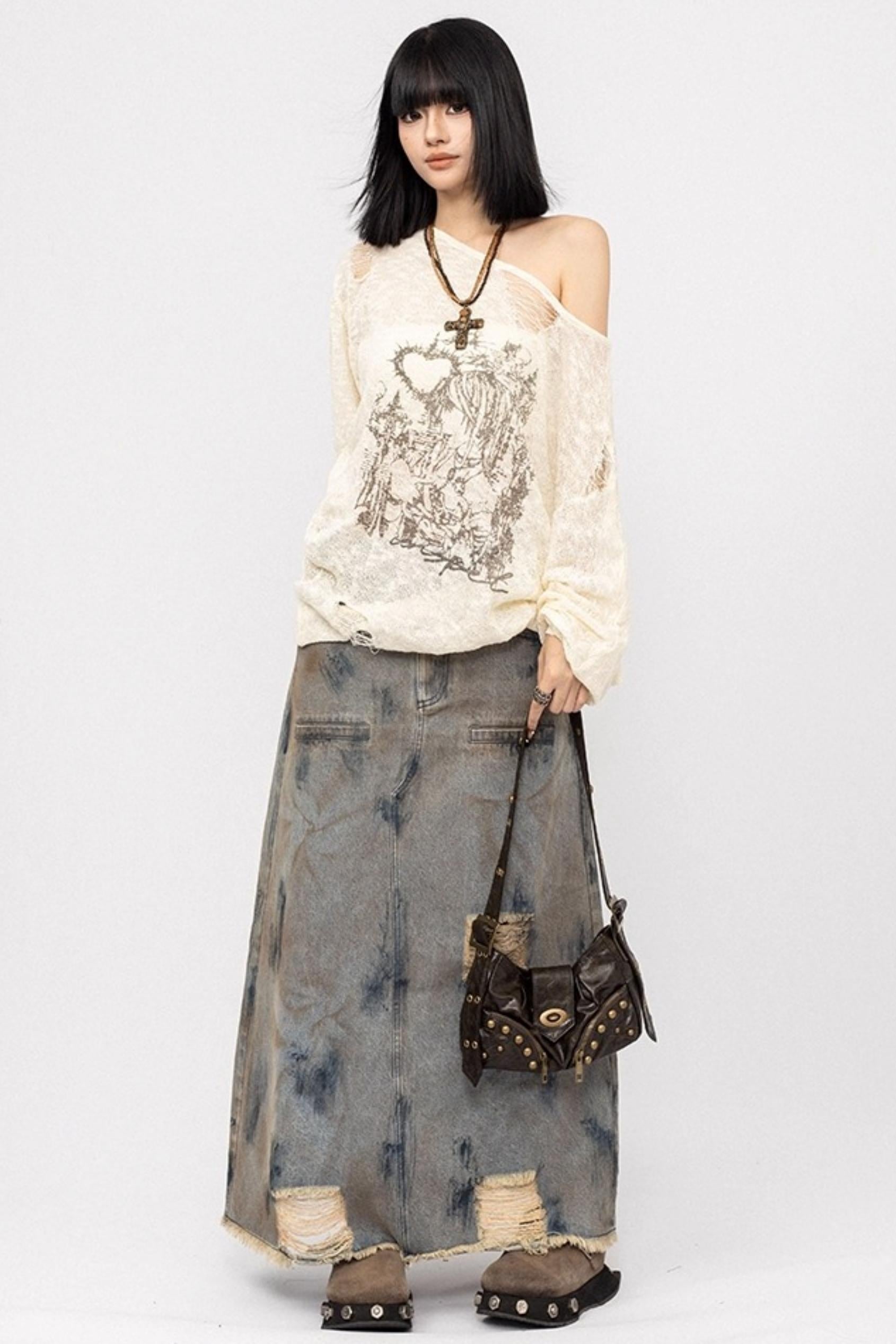 Autumn Spice Girl Denim Skirt