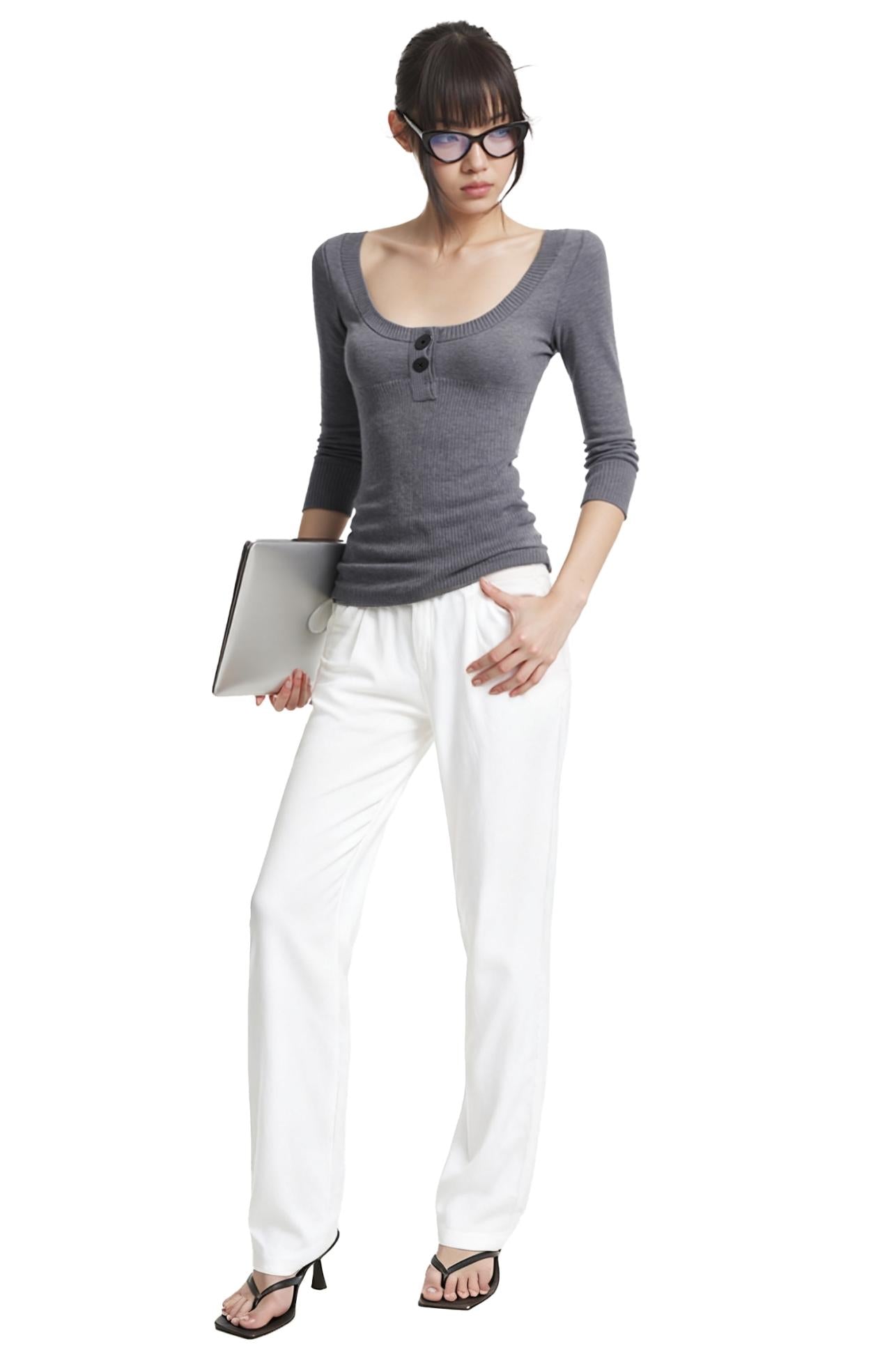 Black Shoulder Knit Top
