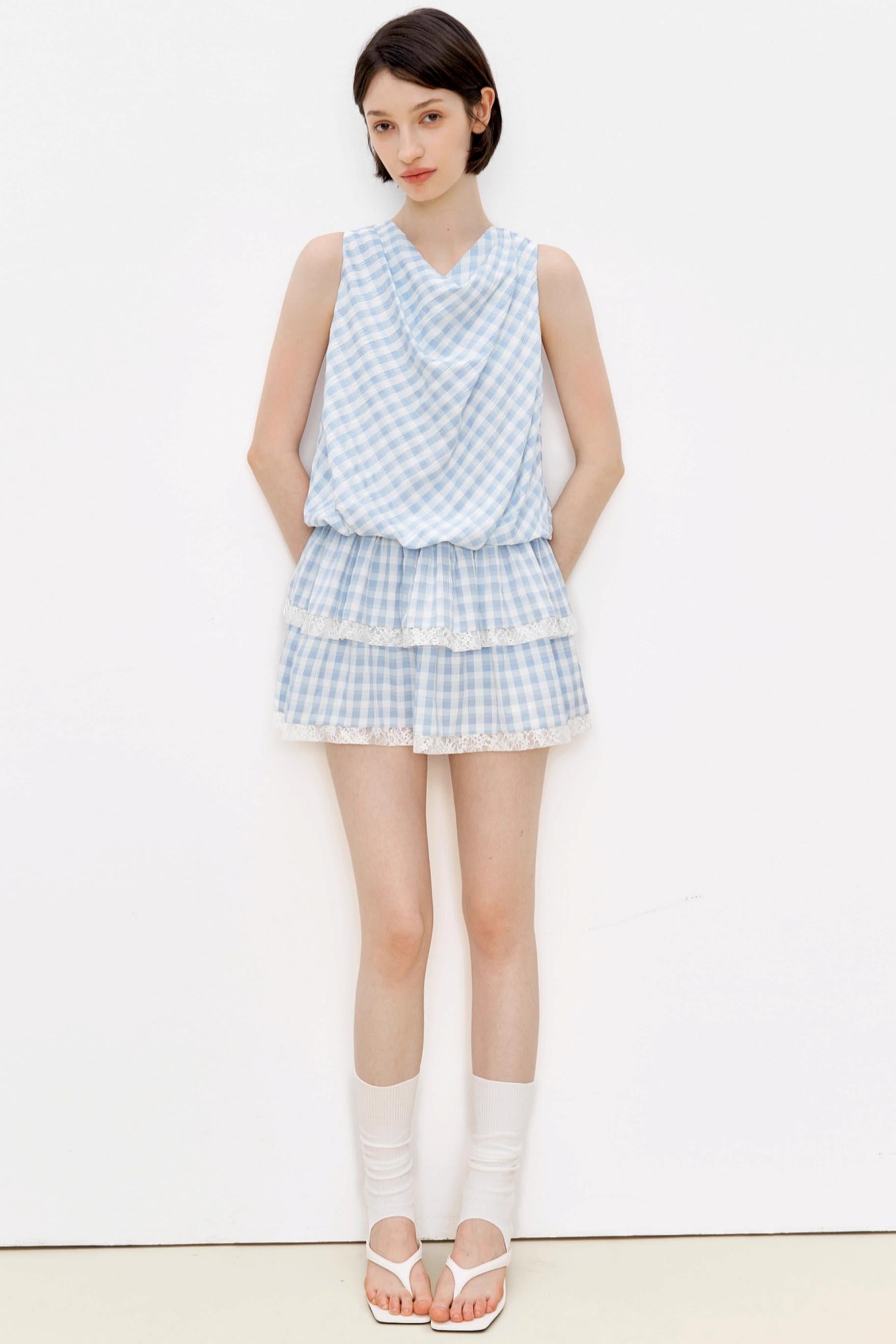 Blue Plaid Lace A-Line Dress