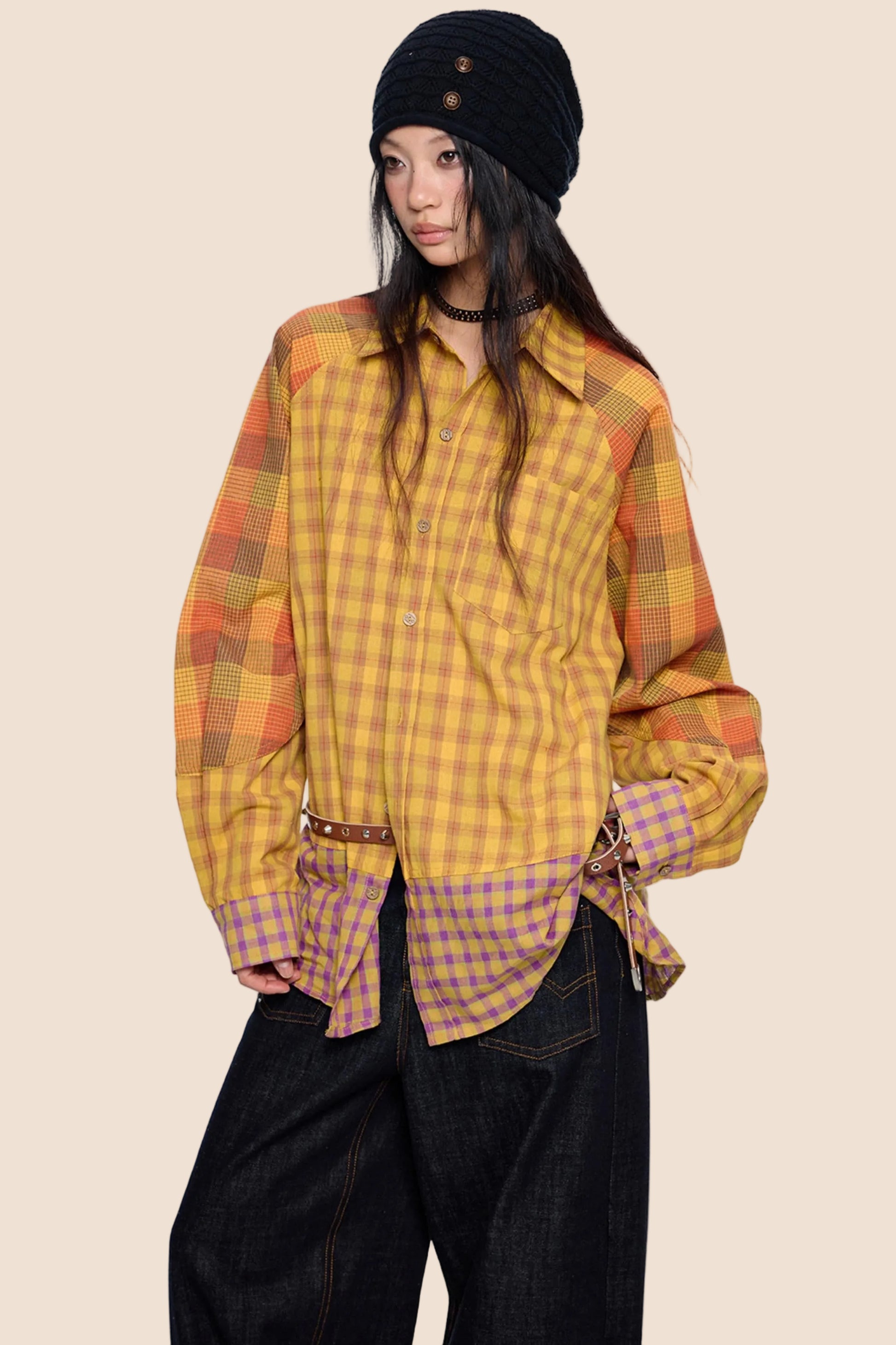 Dopamine Plaid Patchwork Shirt