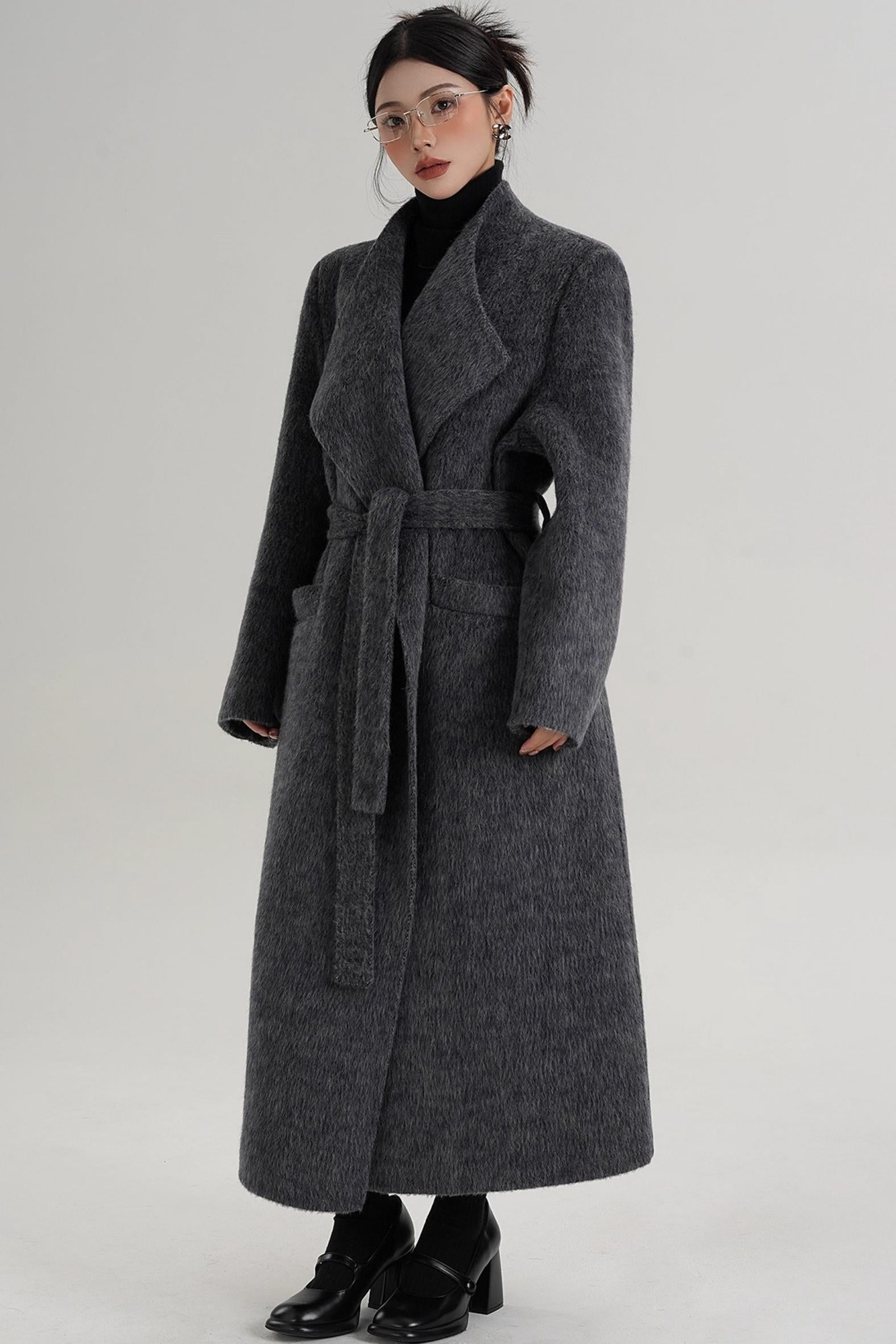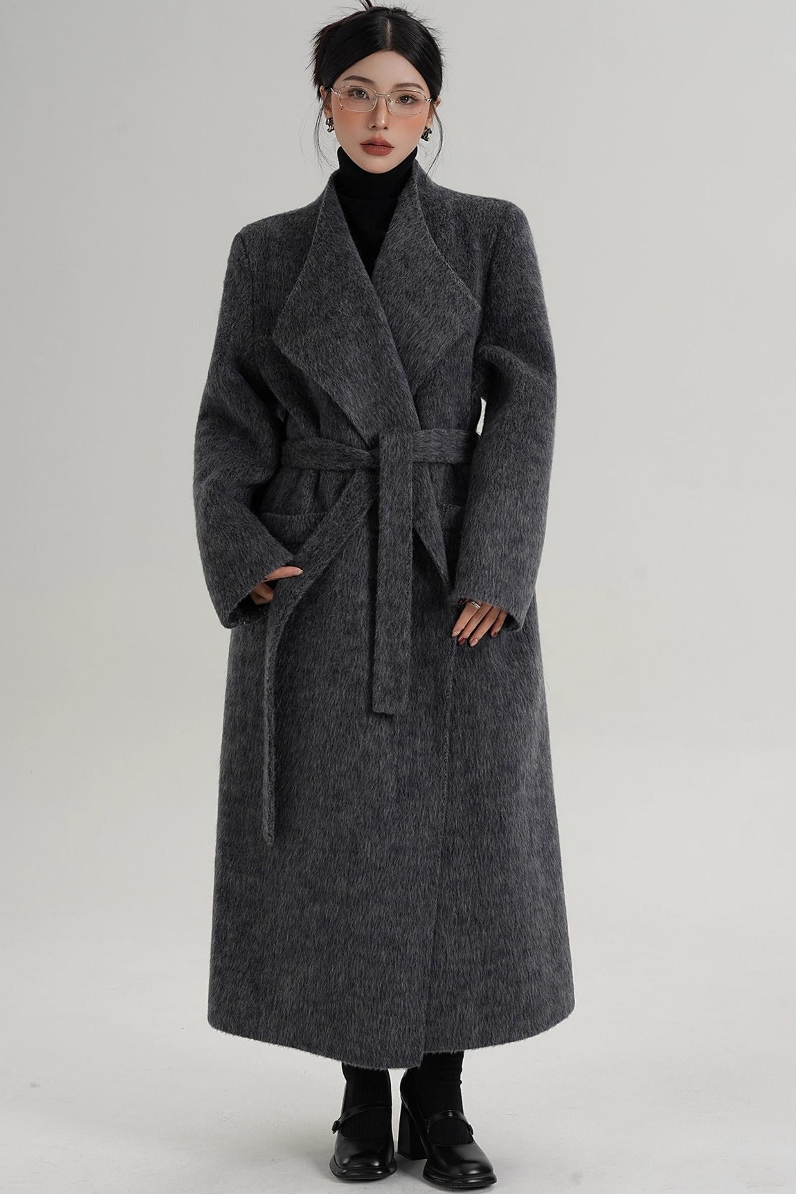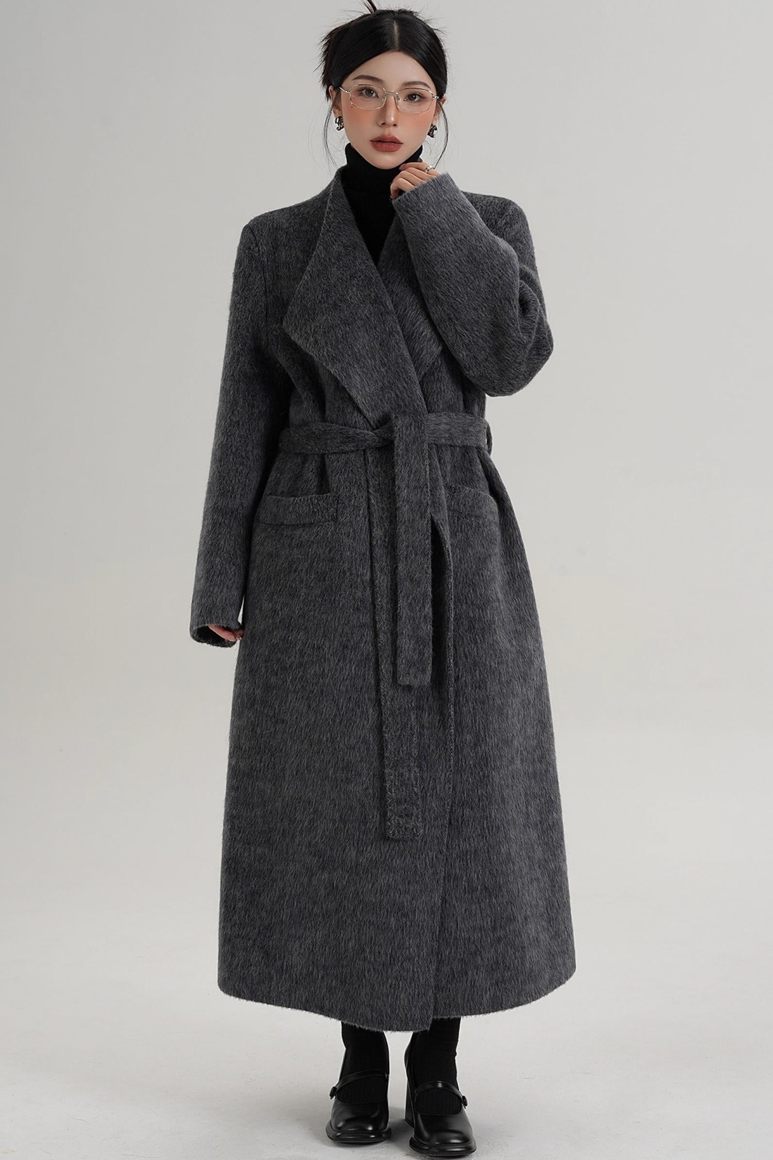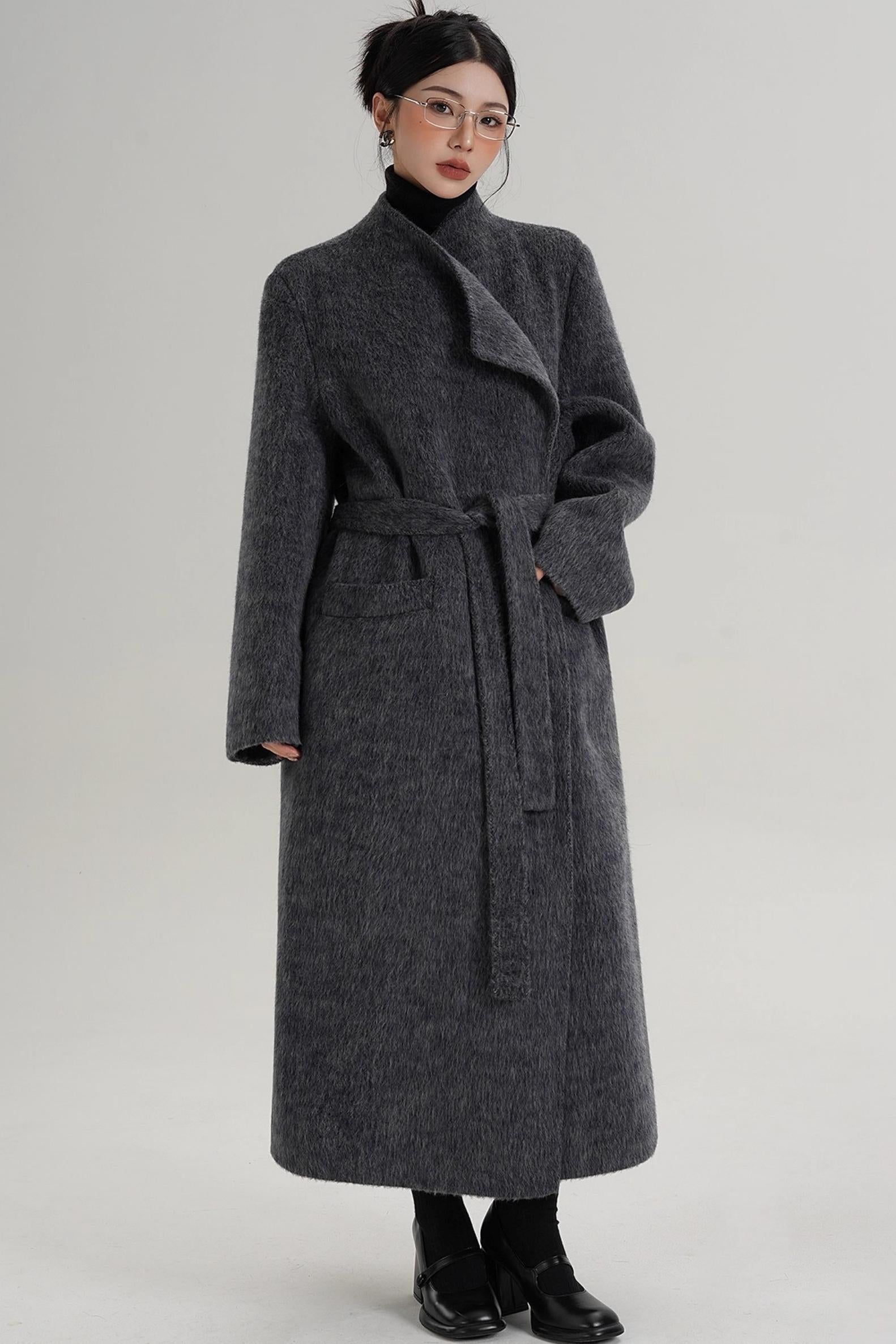 Elegant Gray-Blue Wool Coat