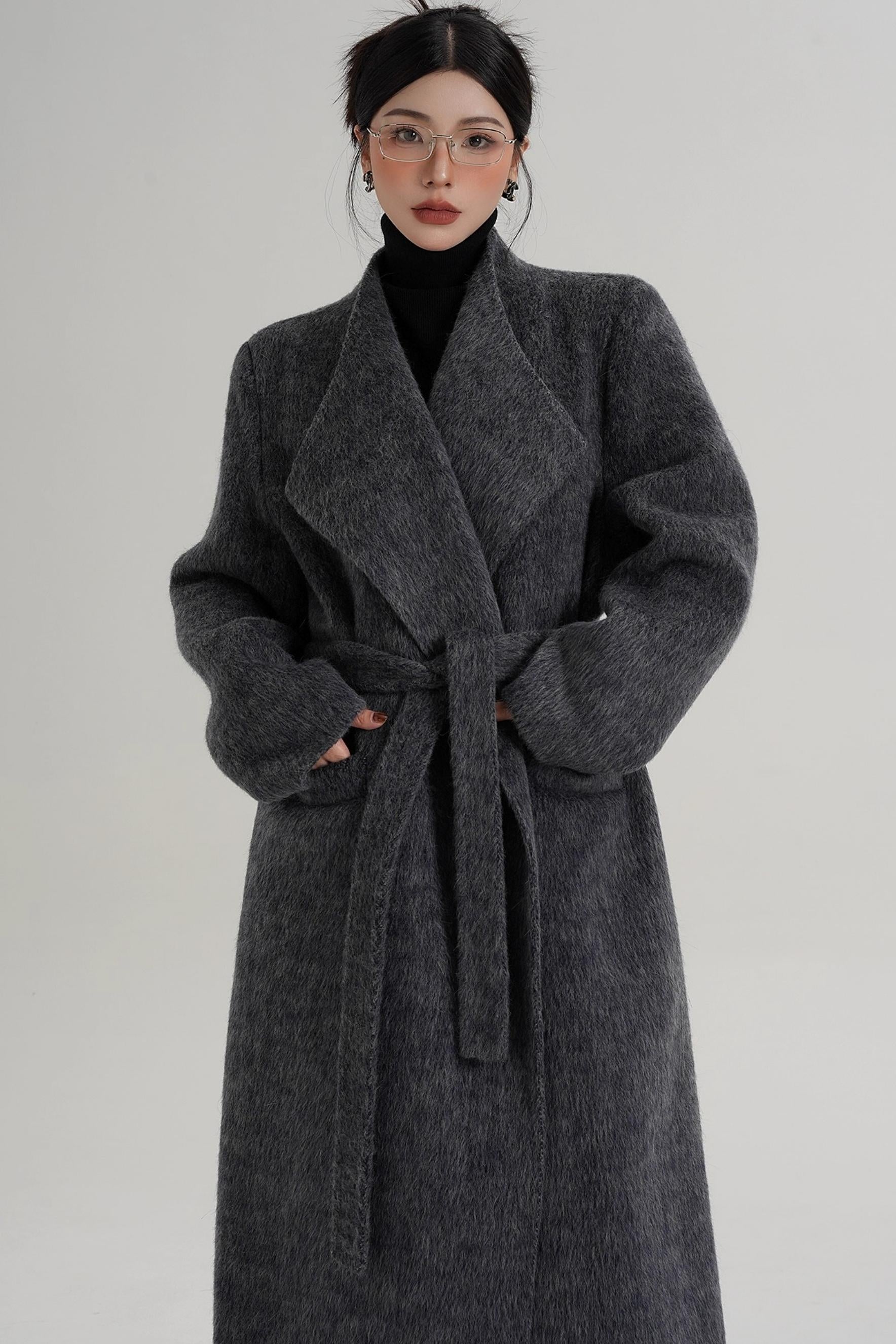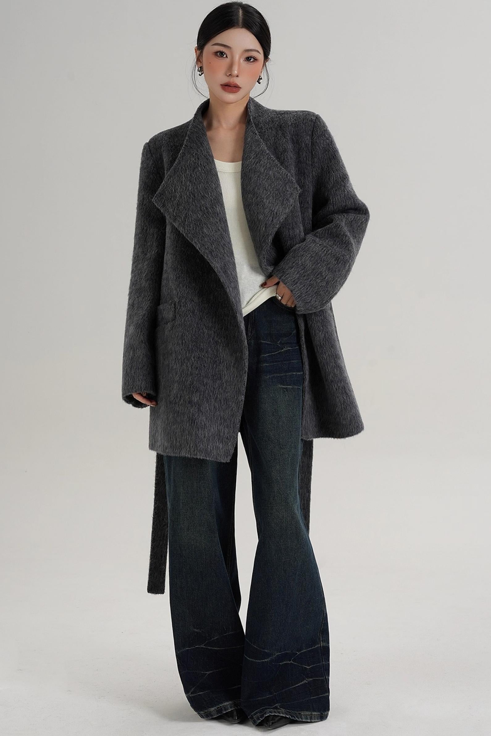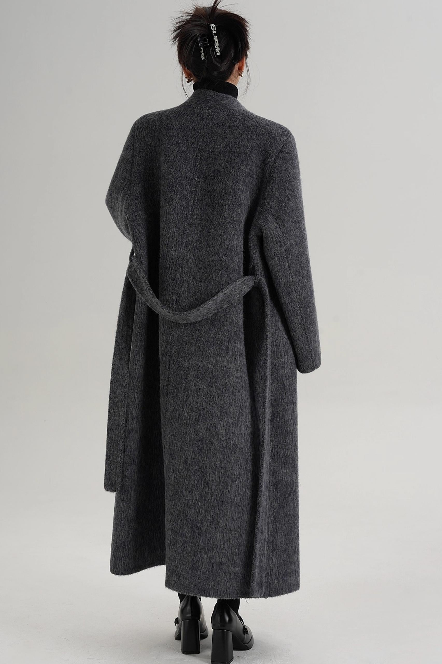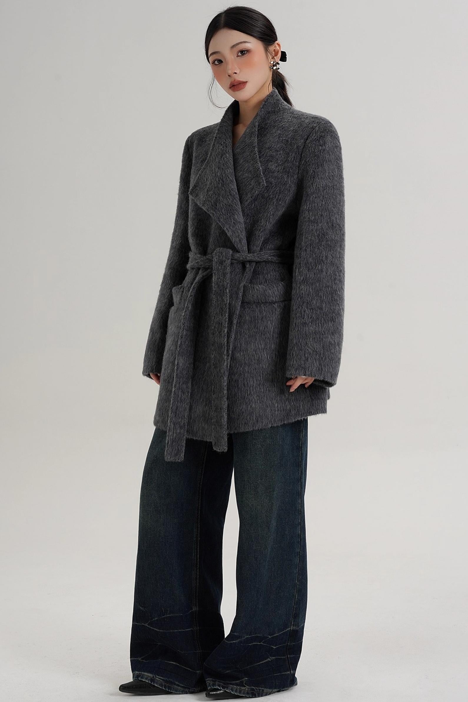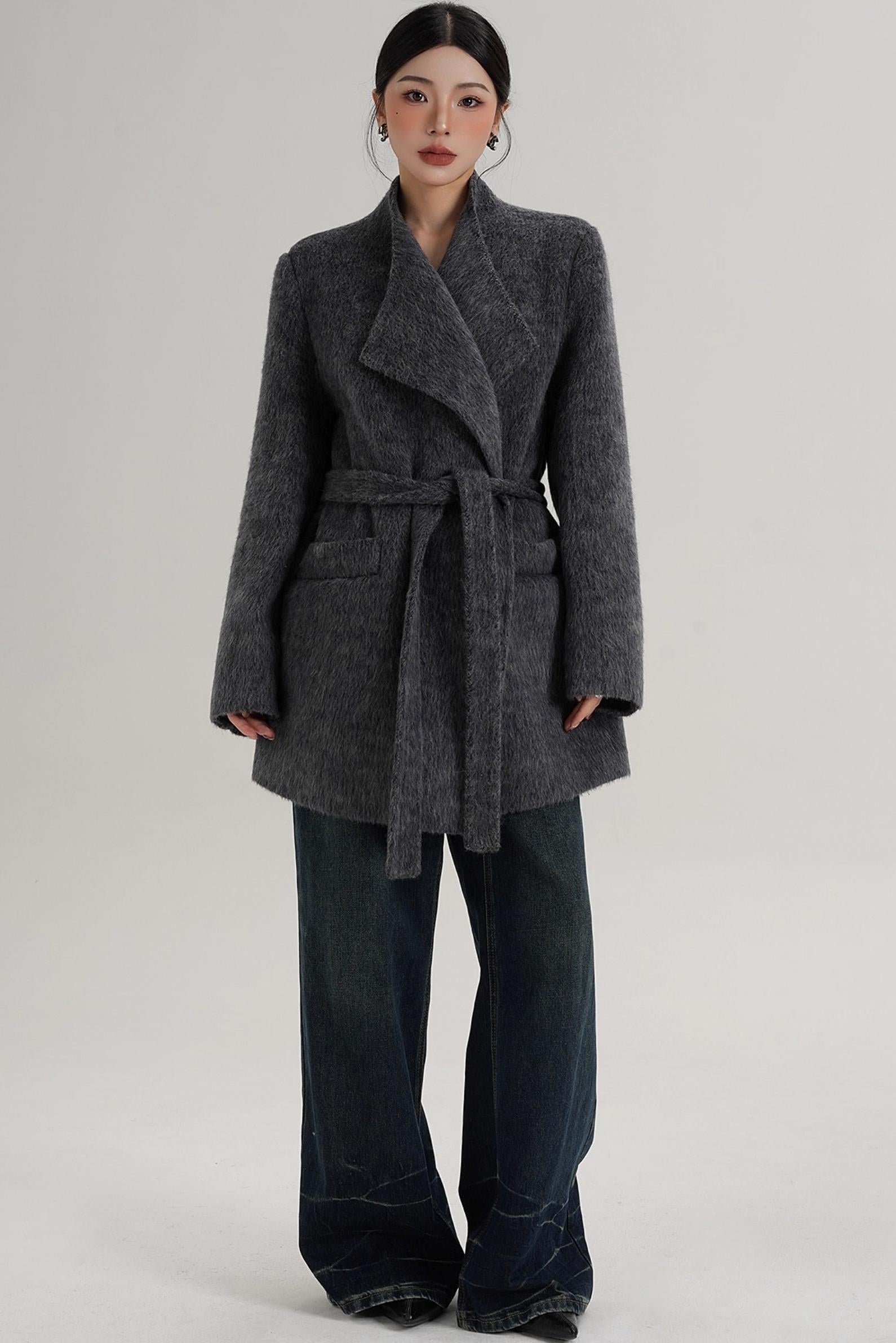 Elegant Gray-Blue Wool Coat