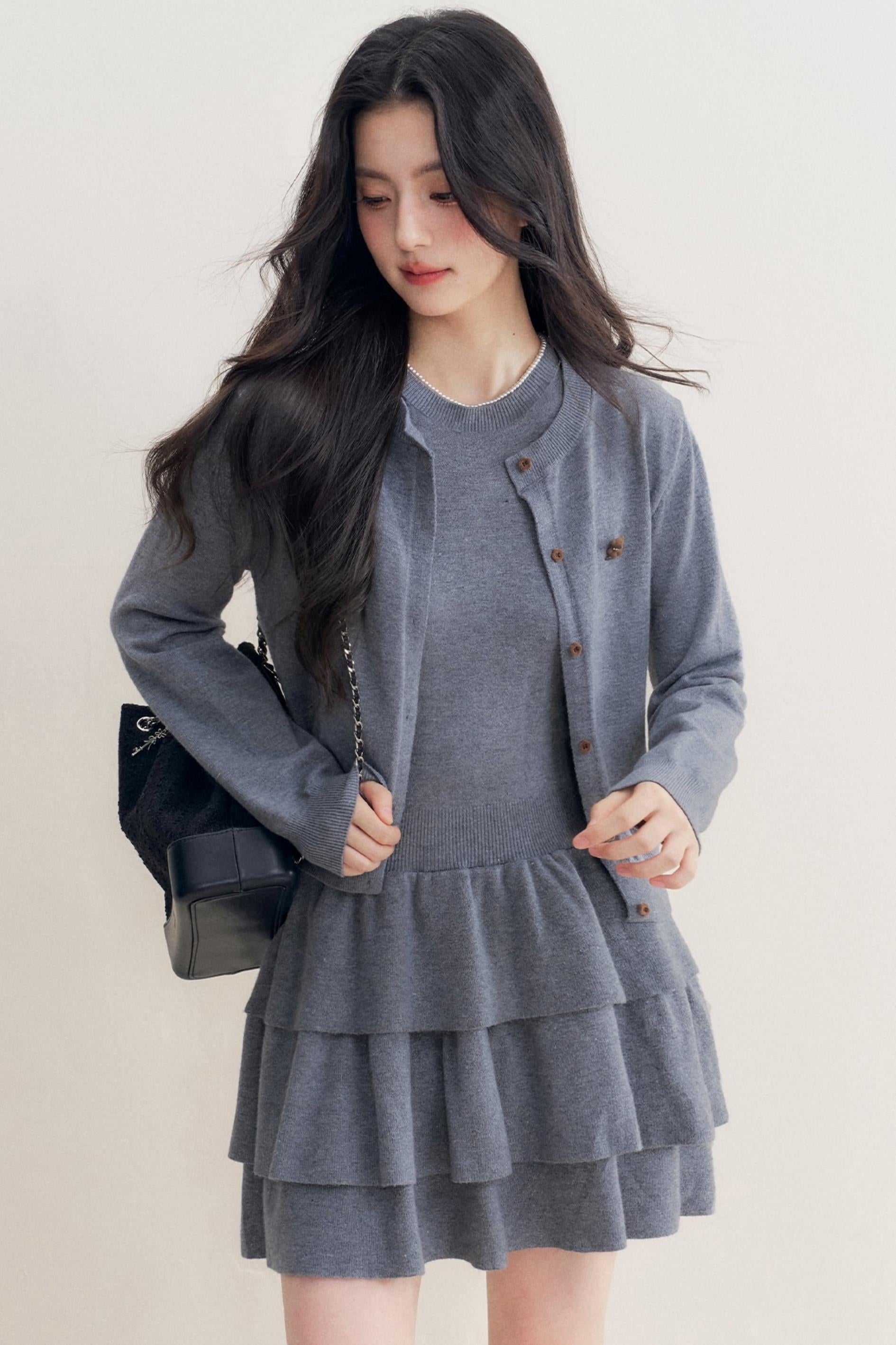 Lazy Grey Flower Knitted Cardigan