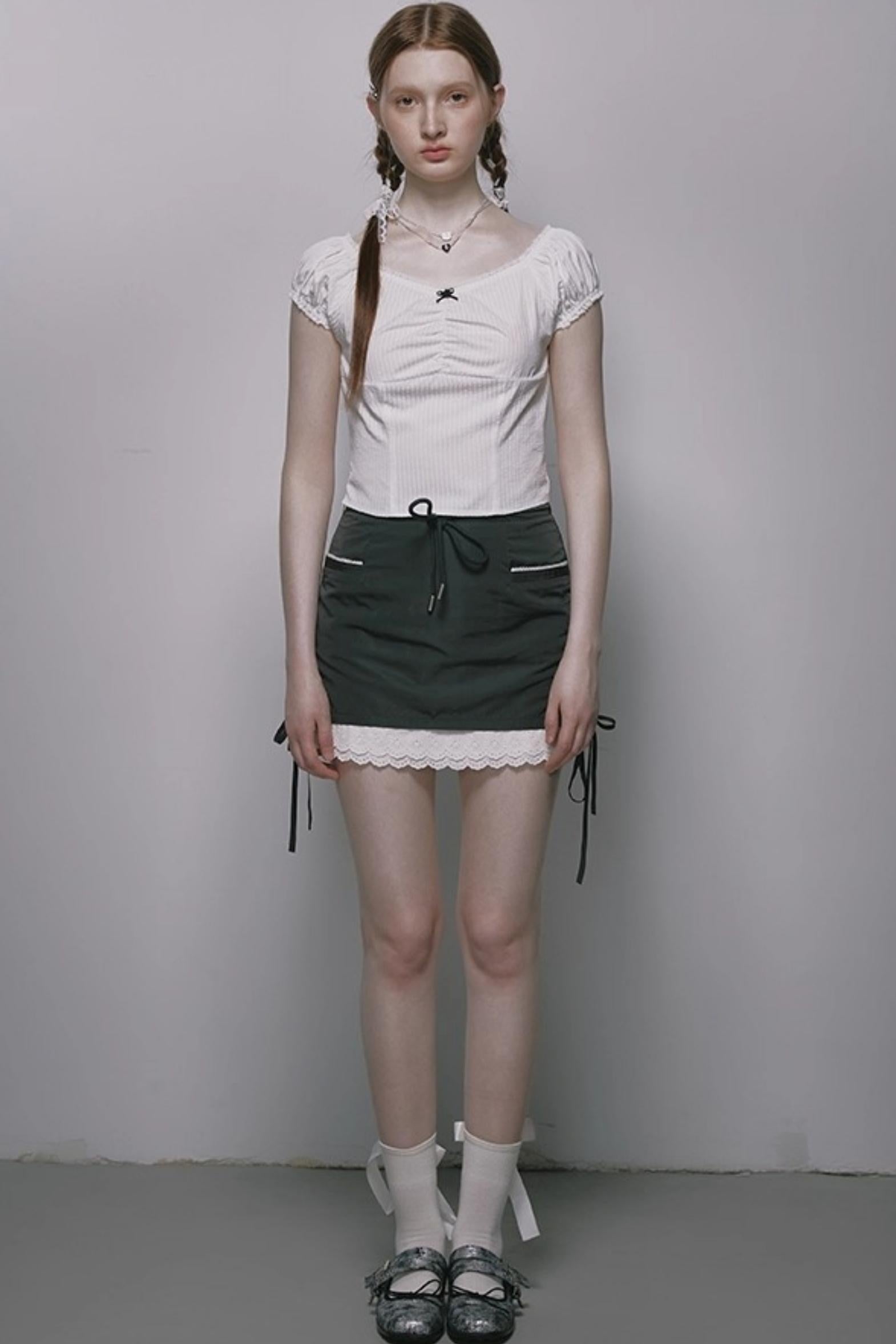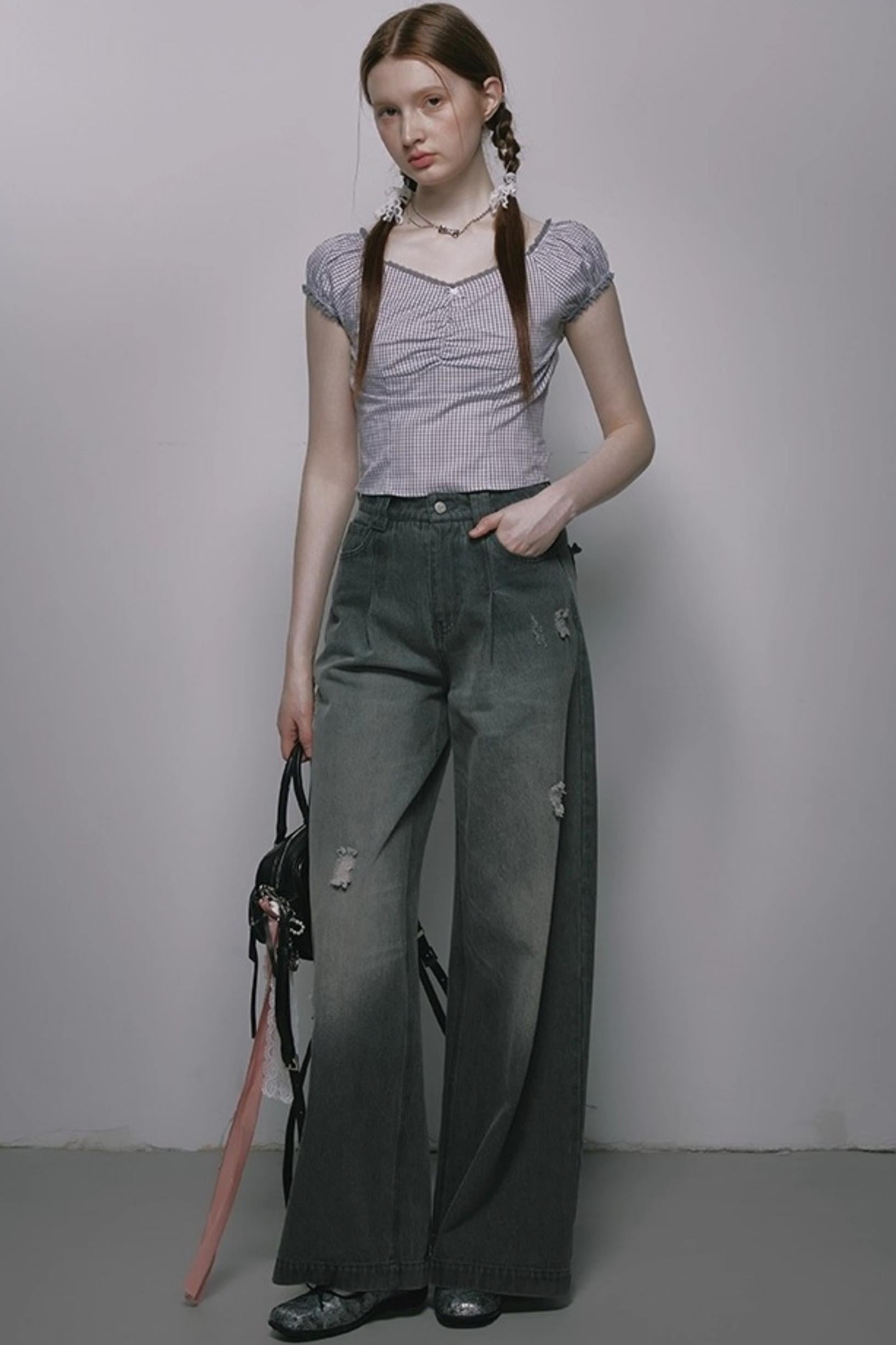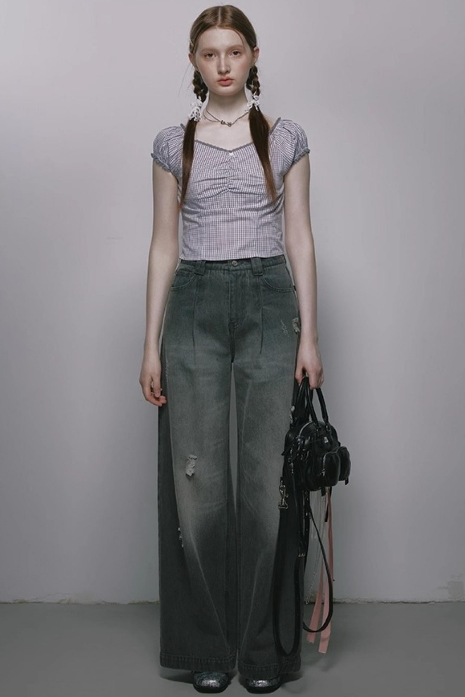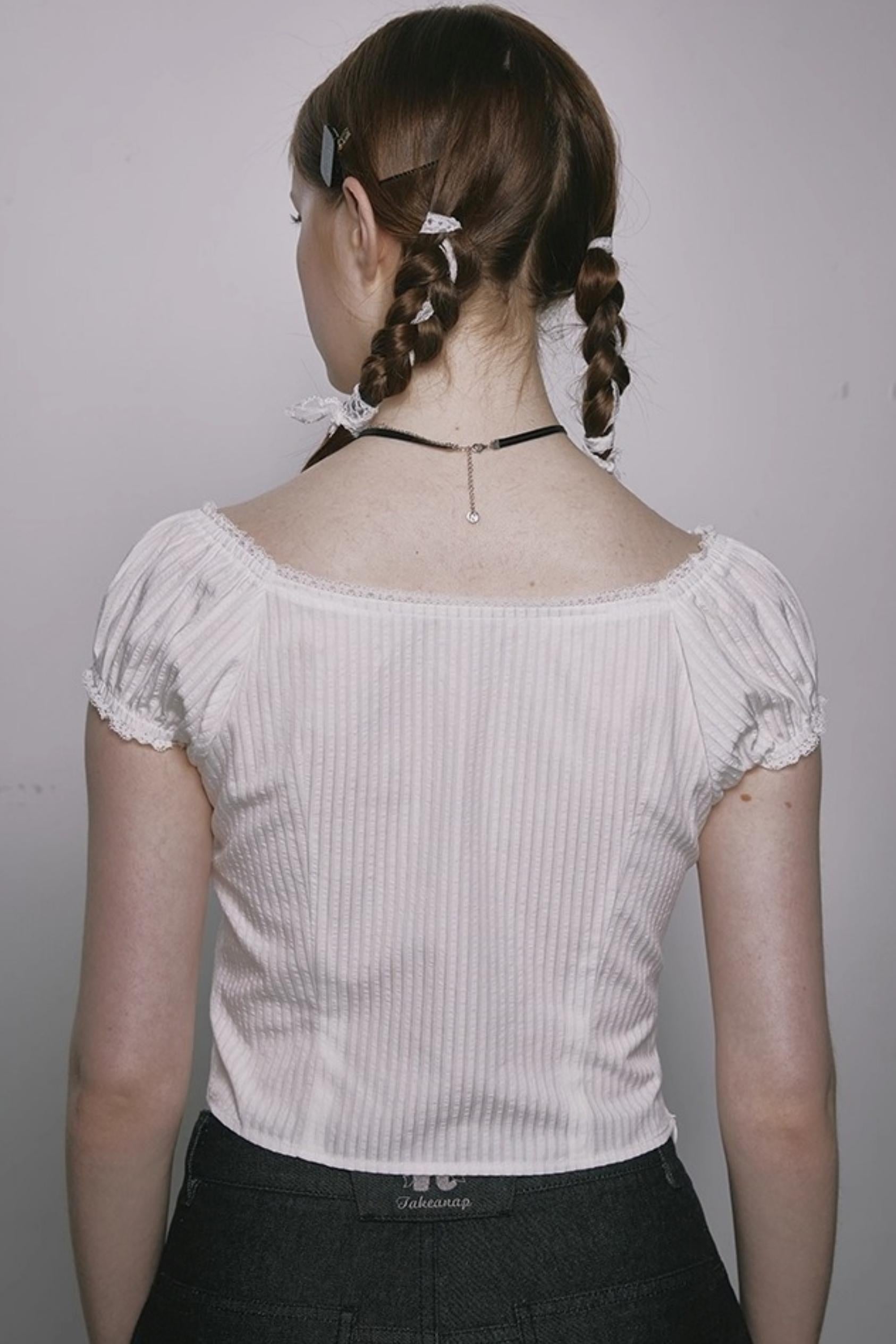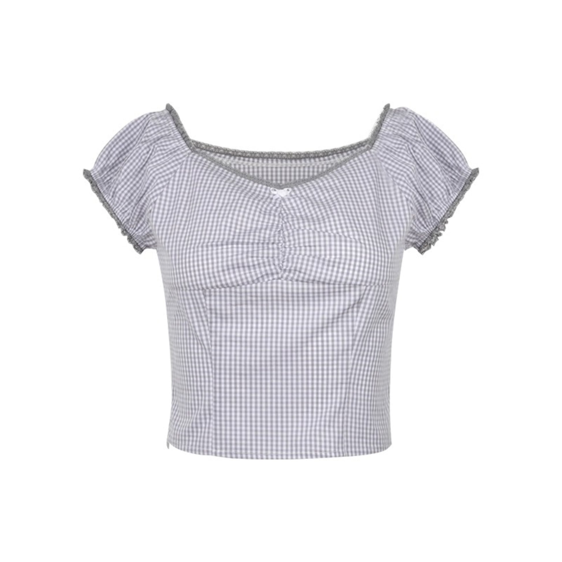 Nap Plaid Puff Sleeve Crop Top