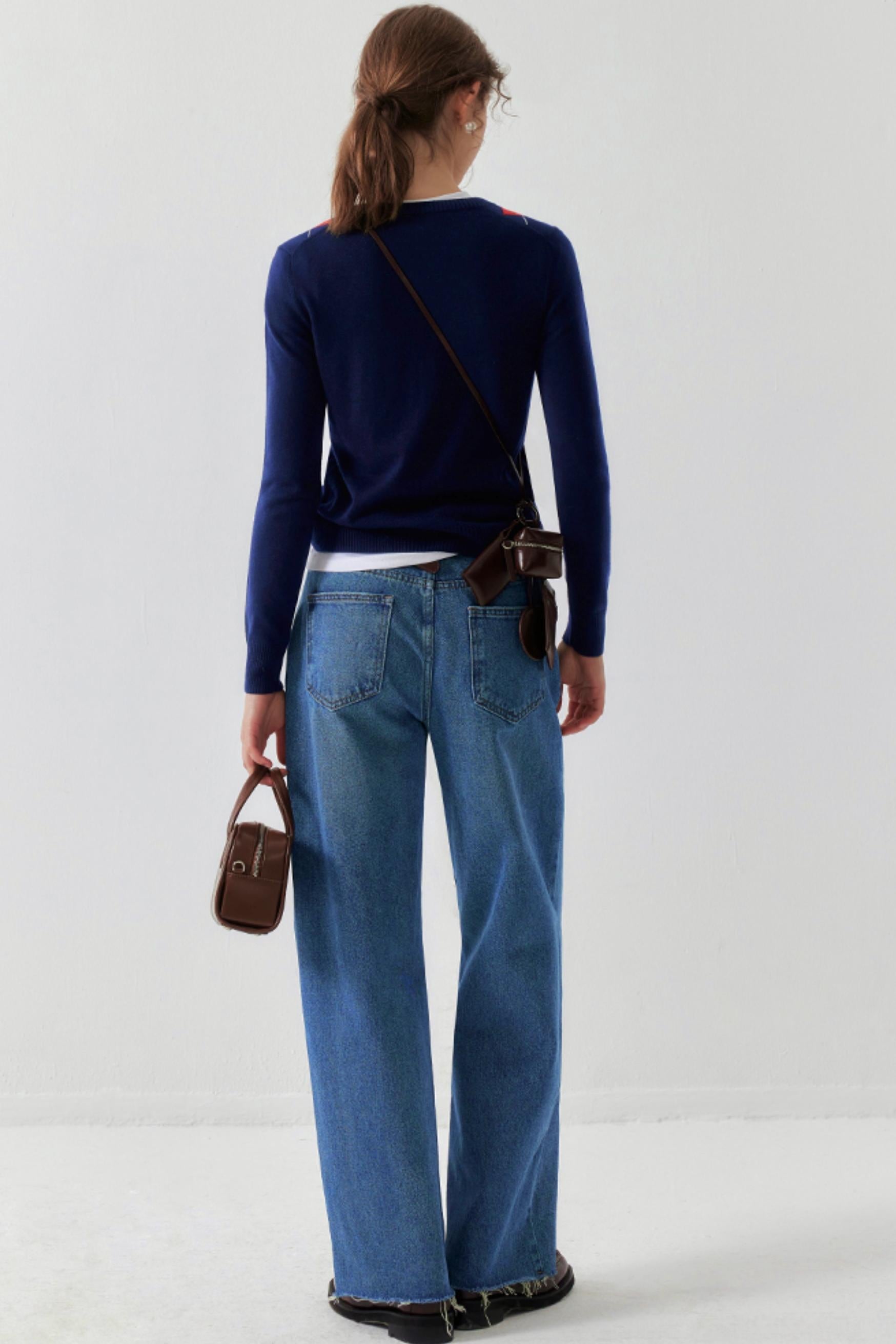 Navy Retro Check Wool Knit Cardigan