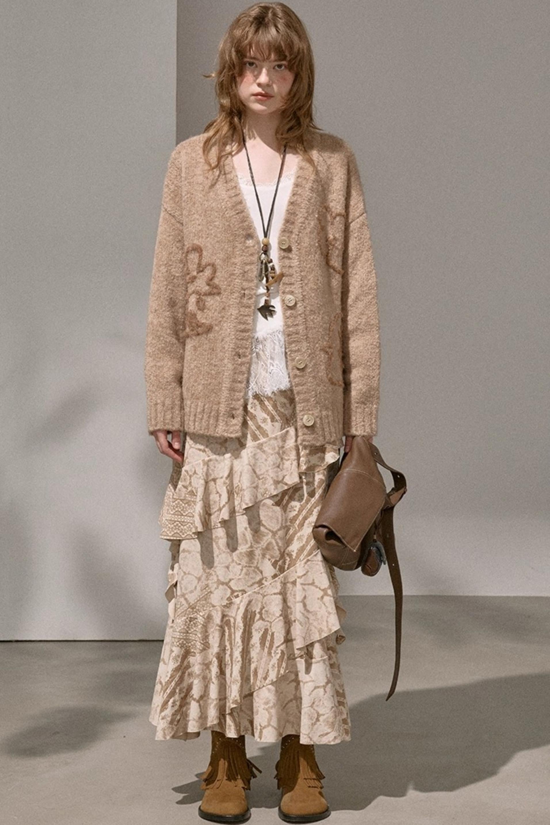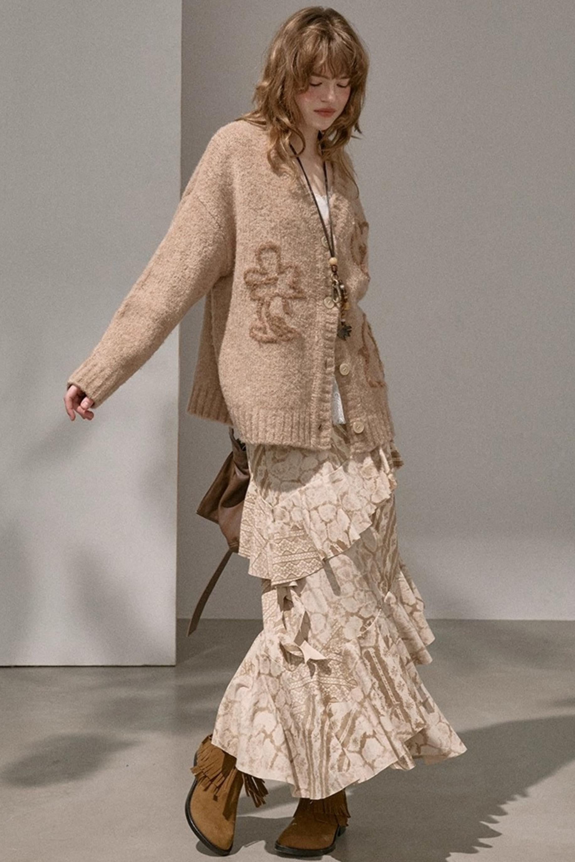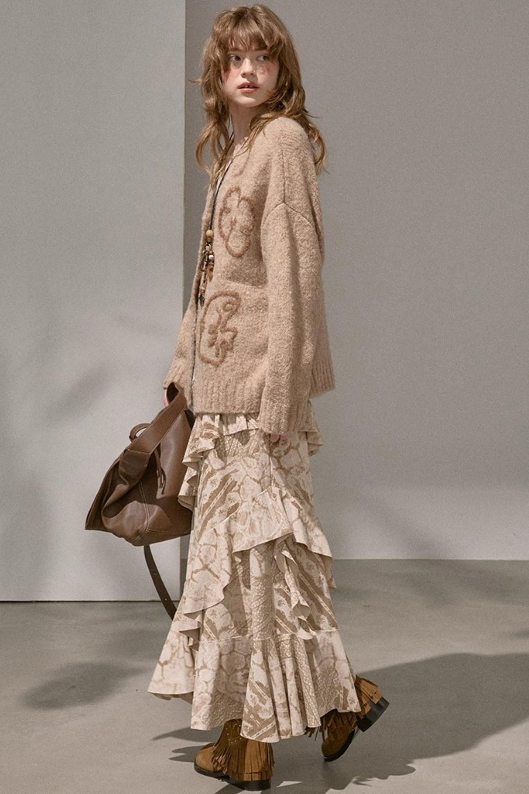 Original Slanted Ruffle Leaf Wave Midi Cake Skirt
