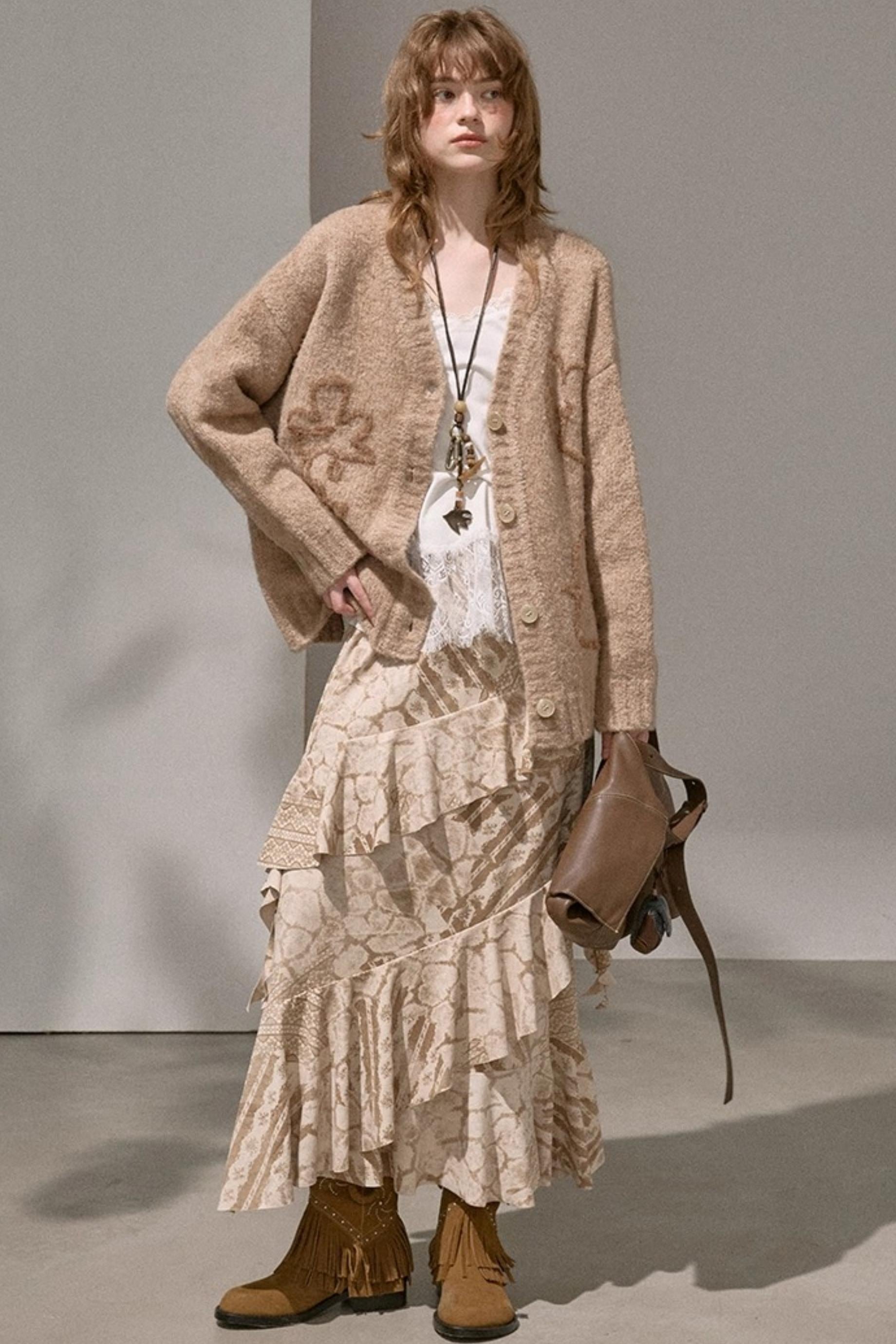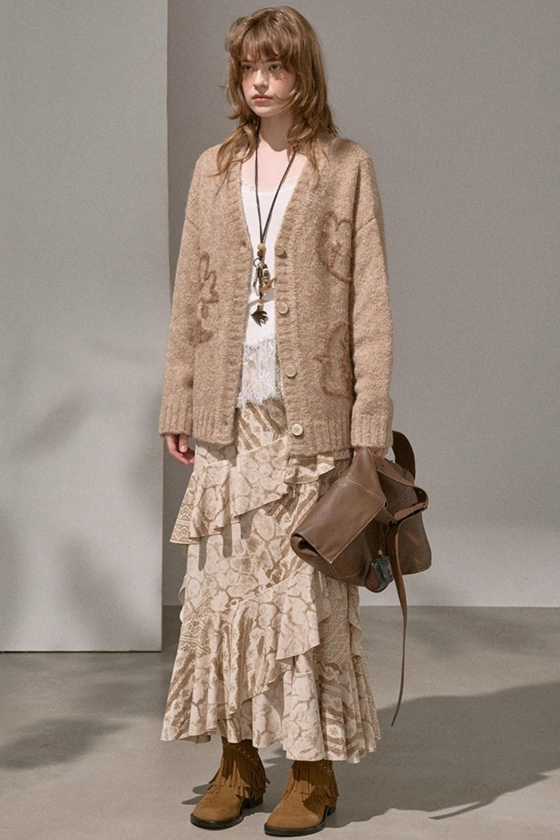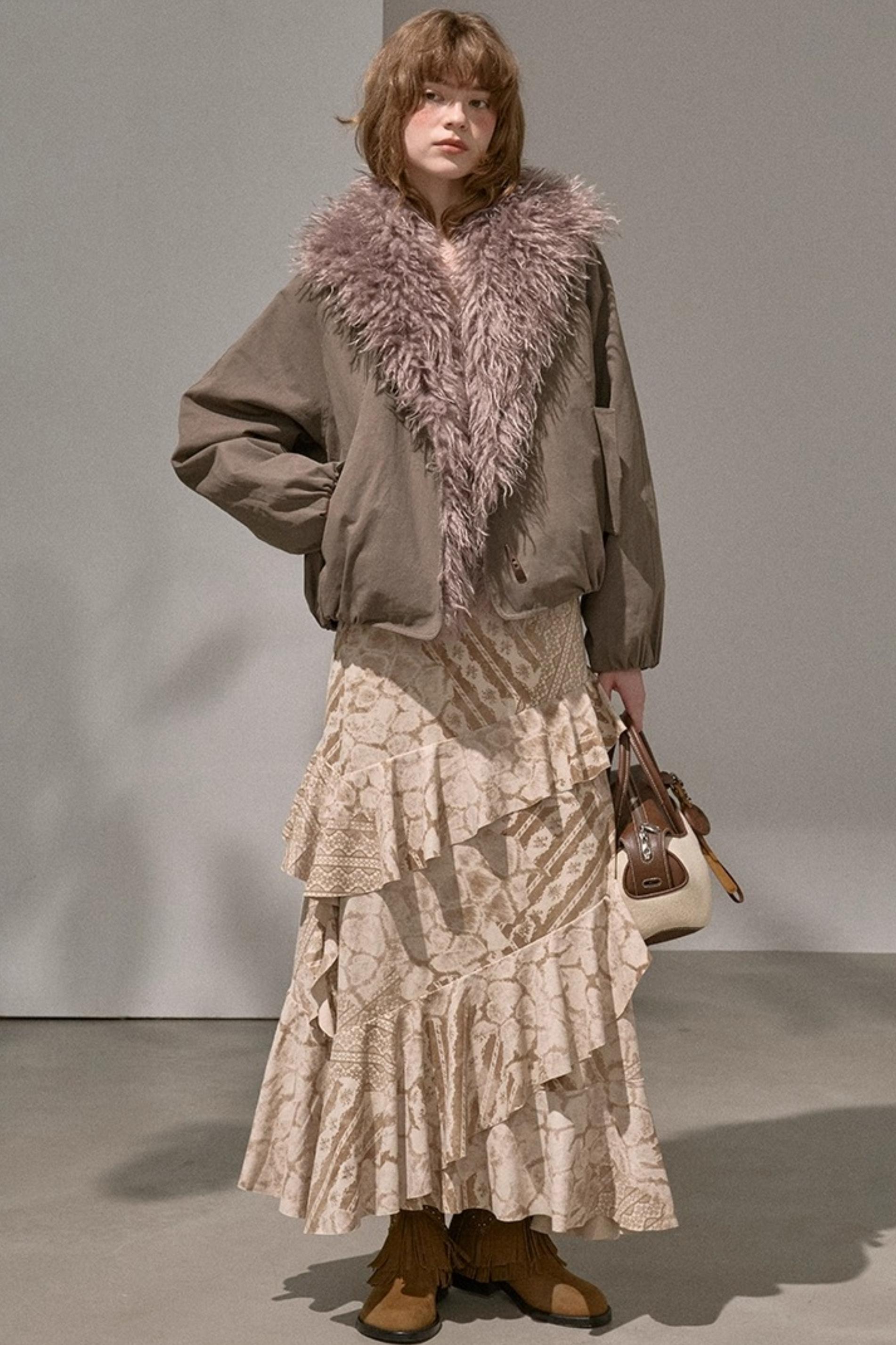 Original Slanted Ruffle Leaf Wave Midi Cake Skirt
