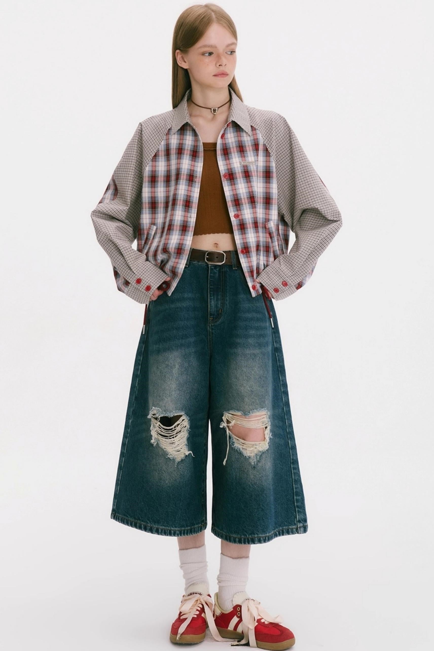 Patchwork Plaid Shirt Jacket