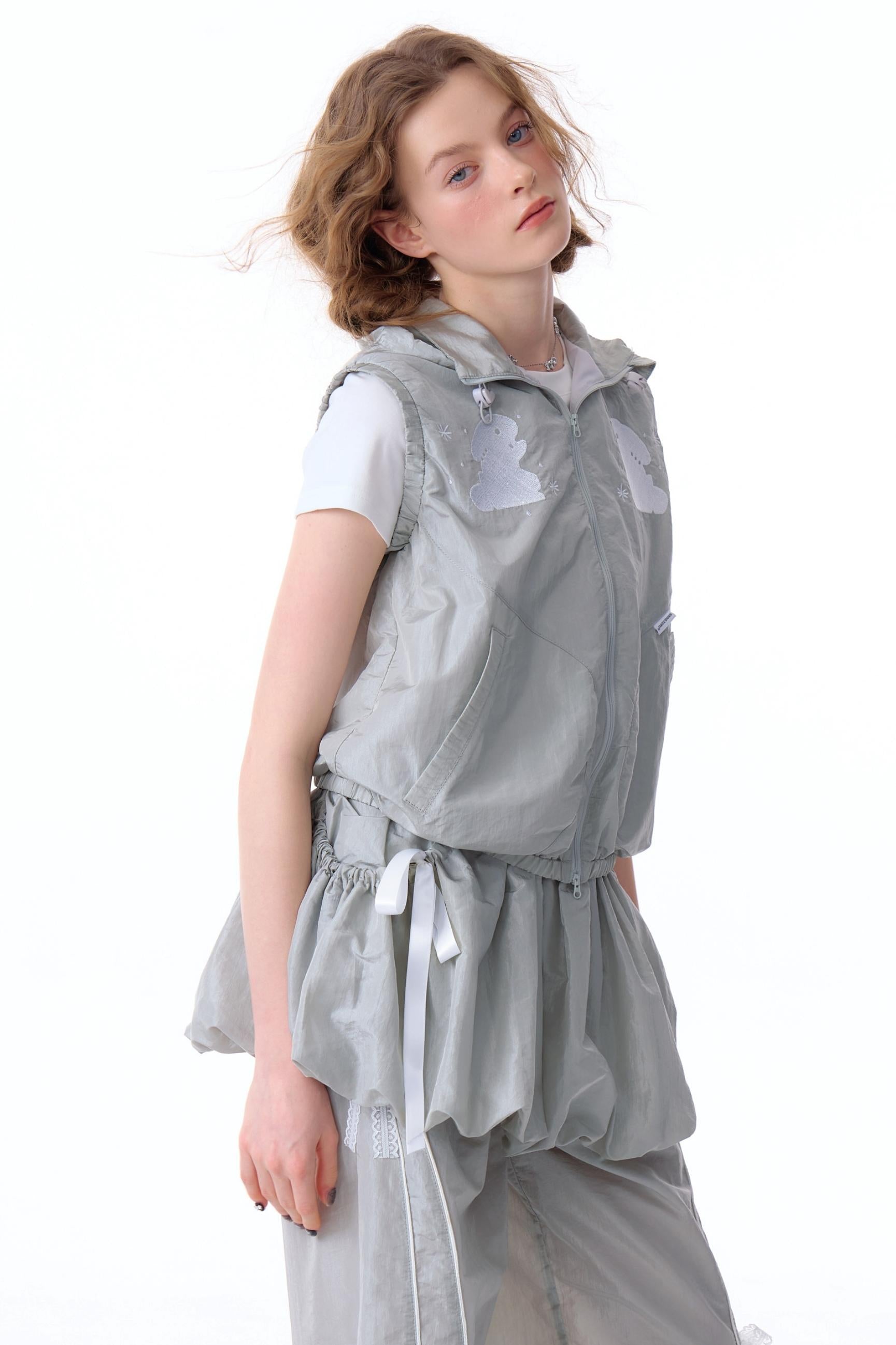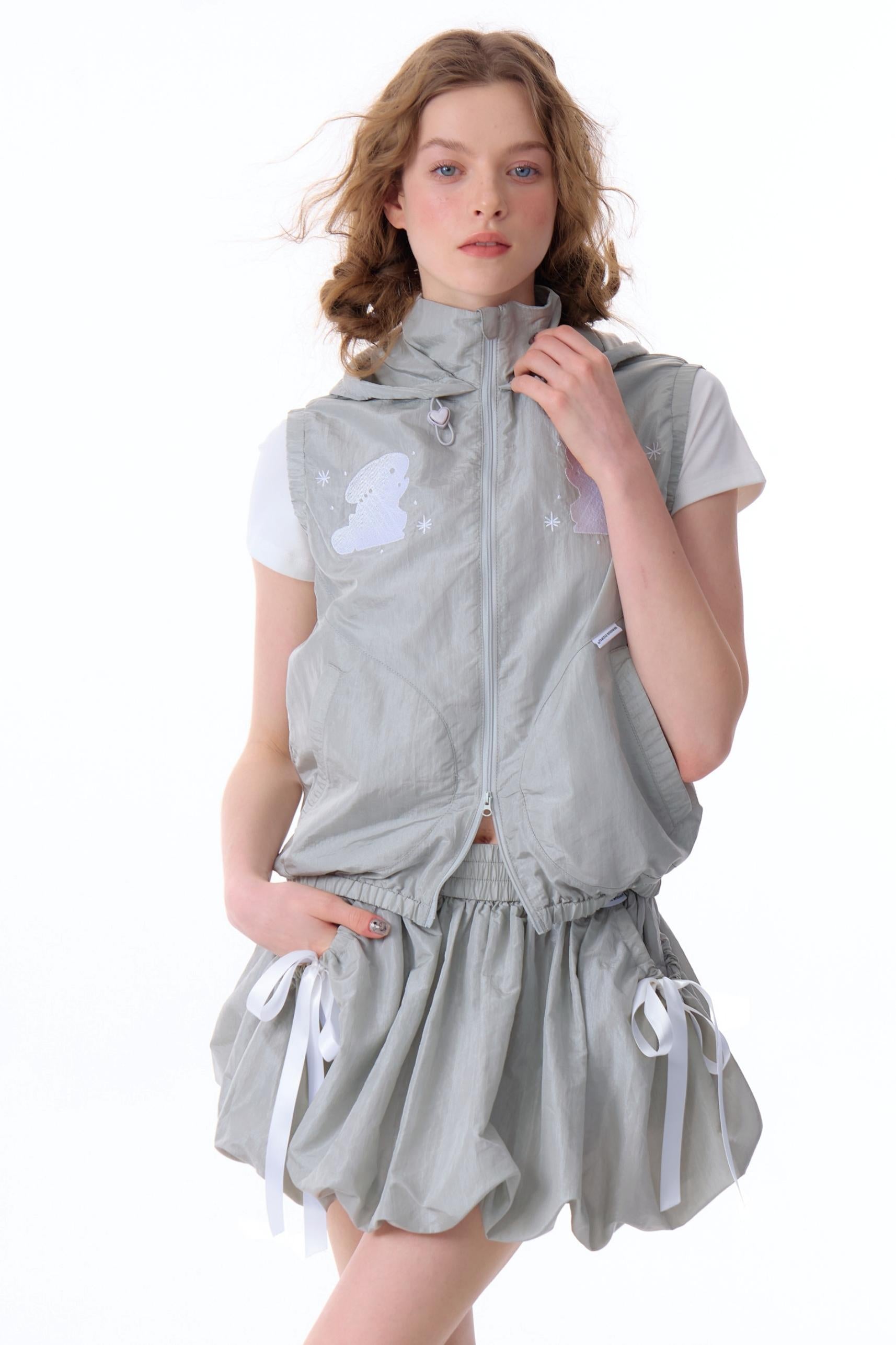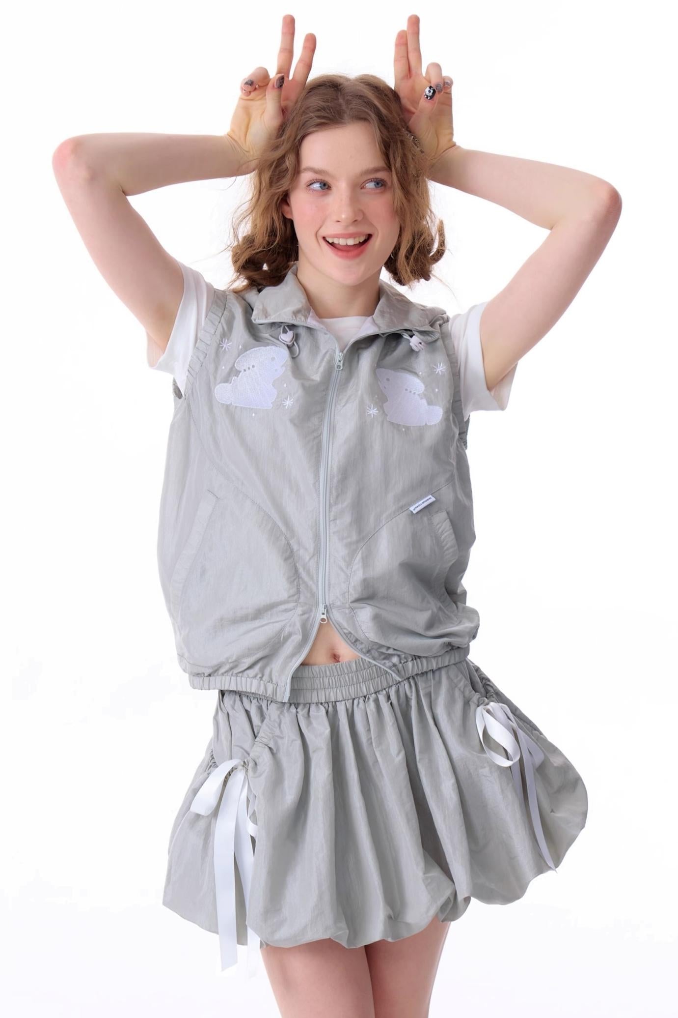 Rabbit Embroidery Hooded Cardigan