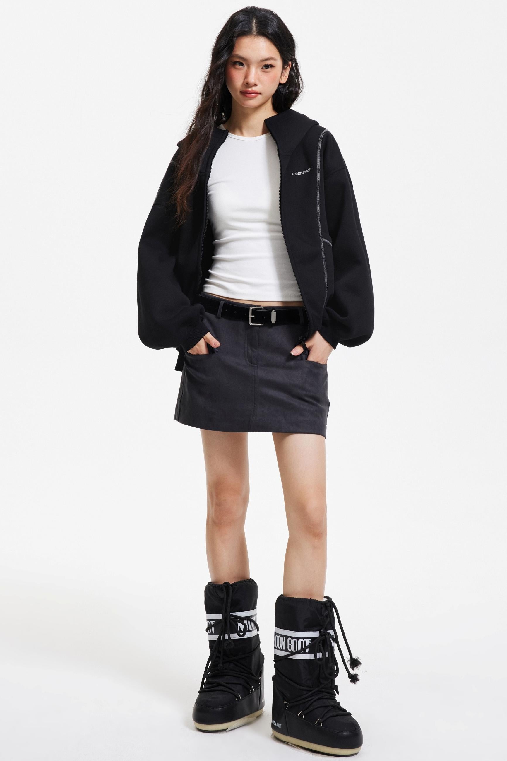 Retro Faux Suede A-Line Skirt