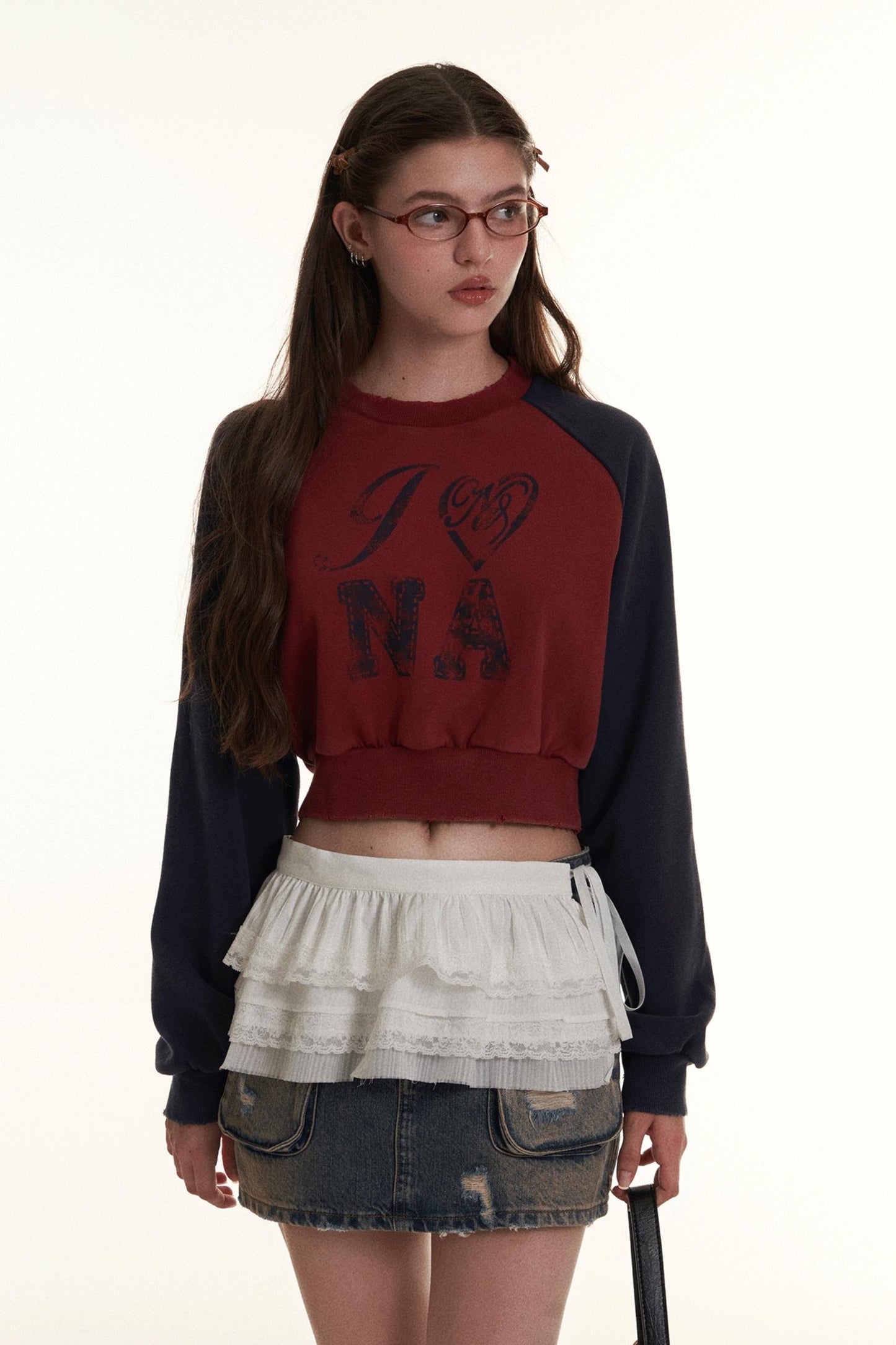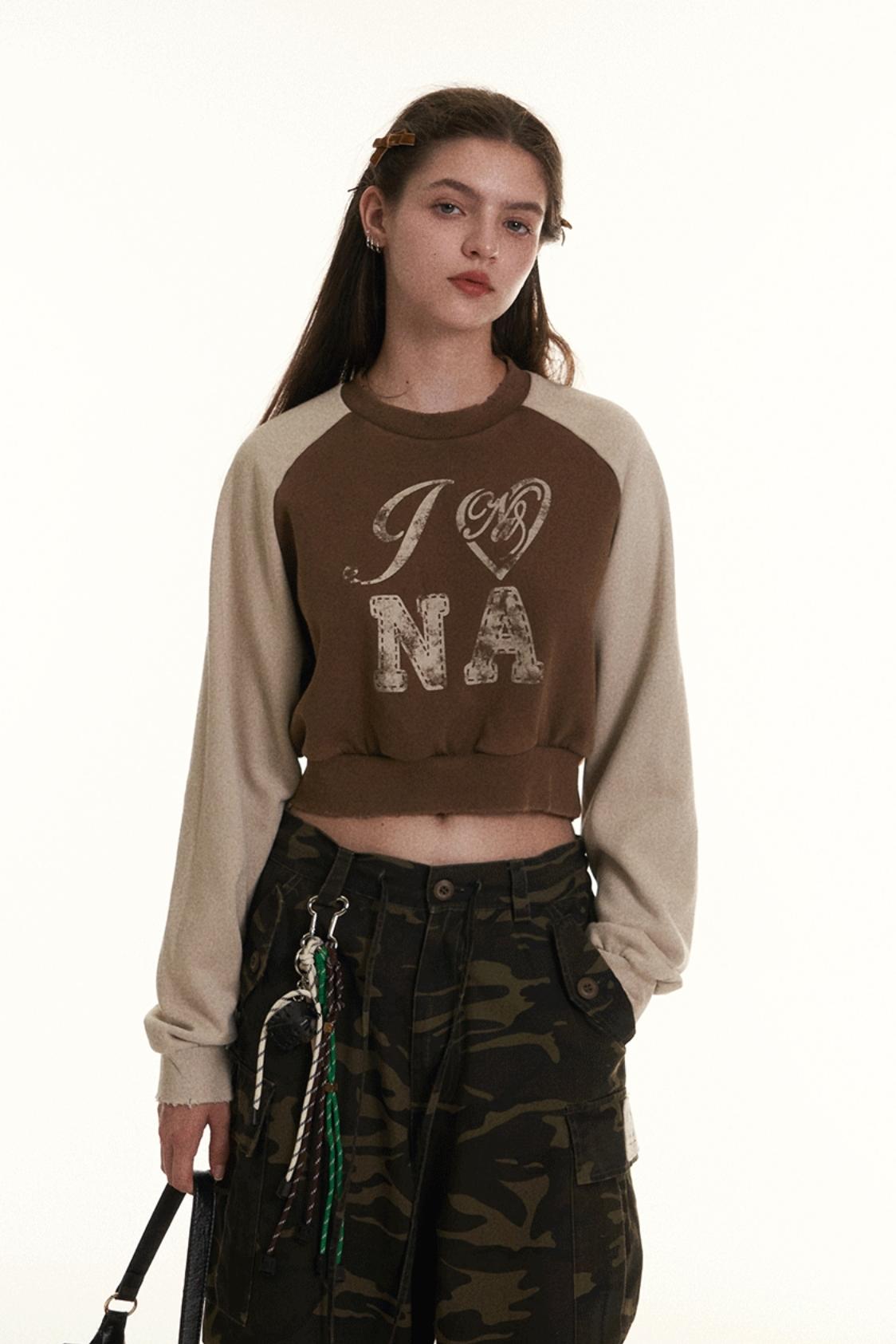 Retro Raglan Sleeve Contrast Print Sweatshirt
