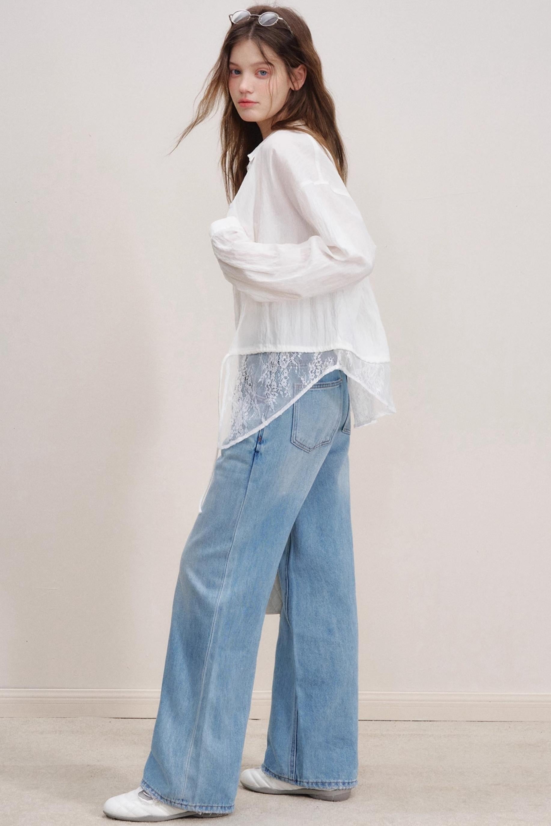Romantic Lace Wide-Leg Jeans