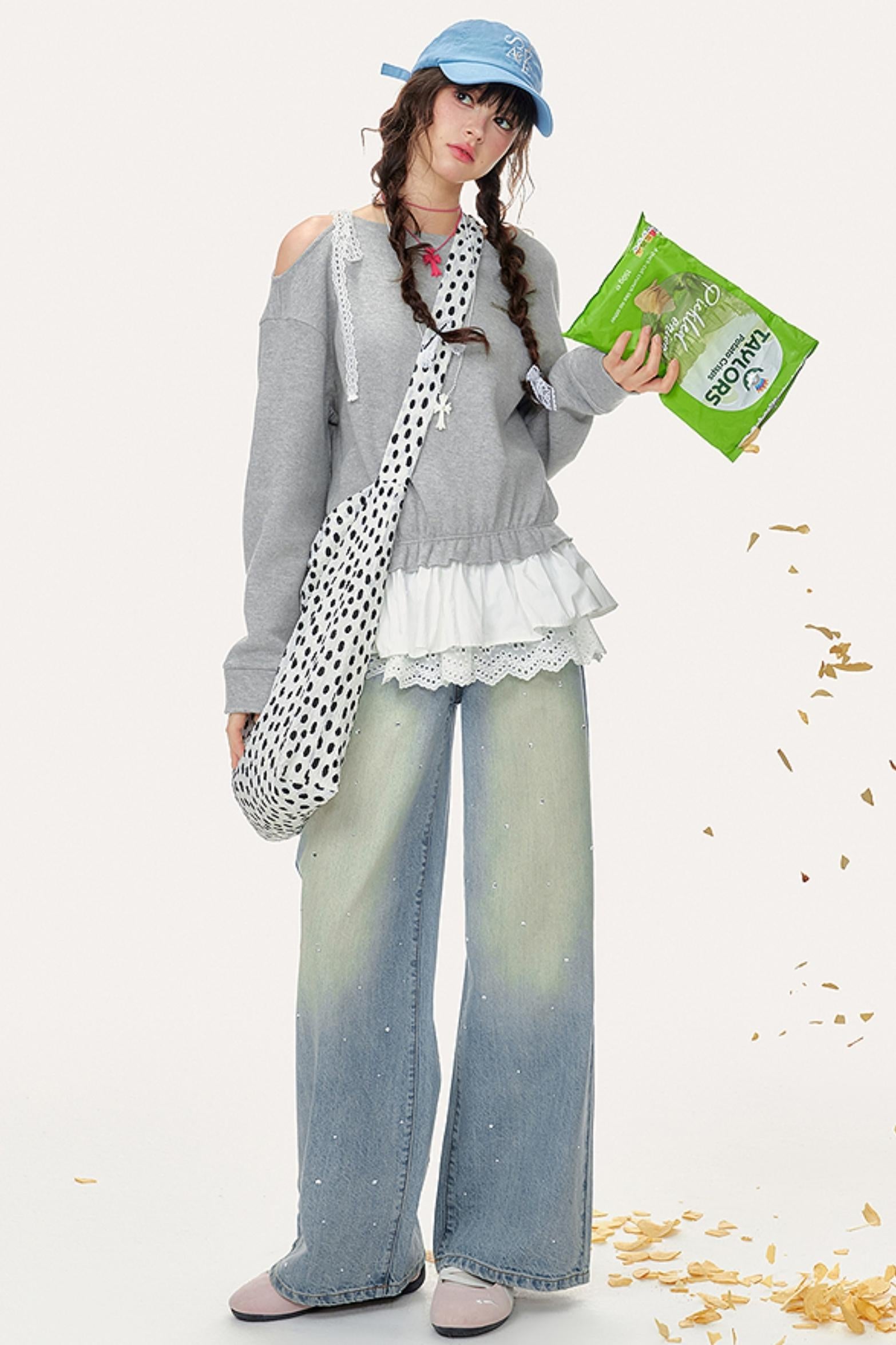Skin-Friendly Slanted Shoulder Sweatshirt
