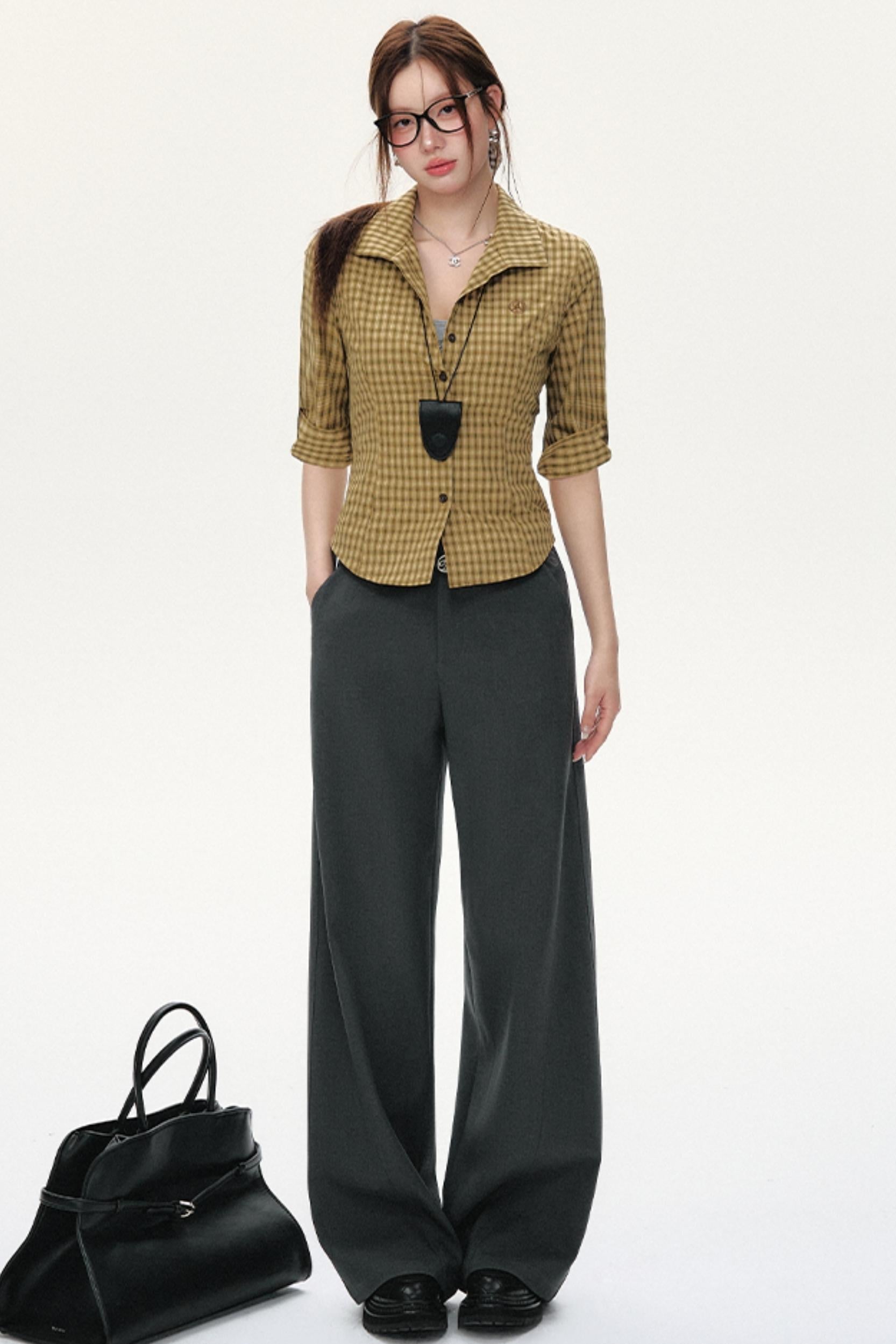 Slim Fit Mid-Sleeve Checked Top Set-Up