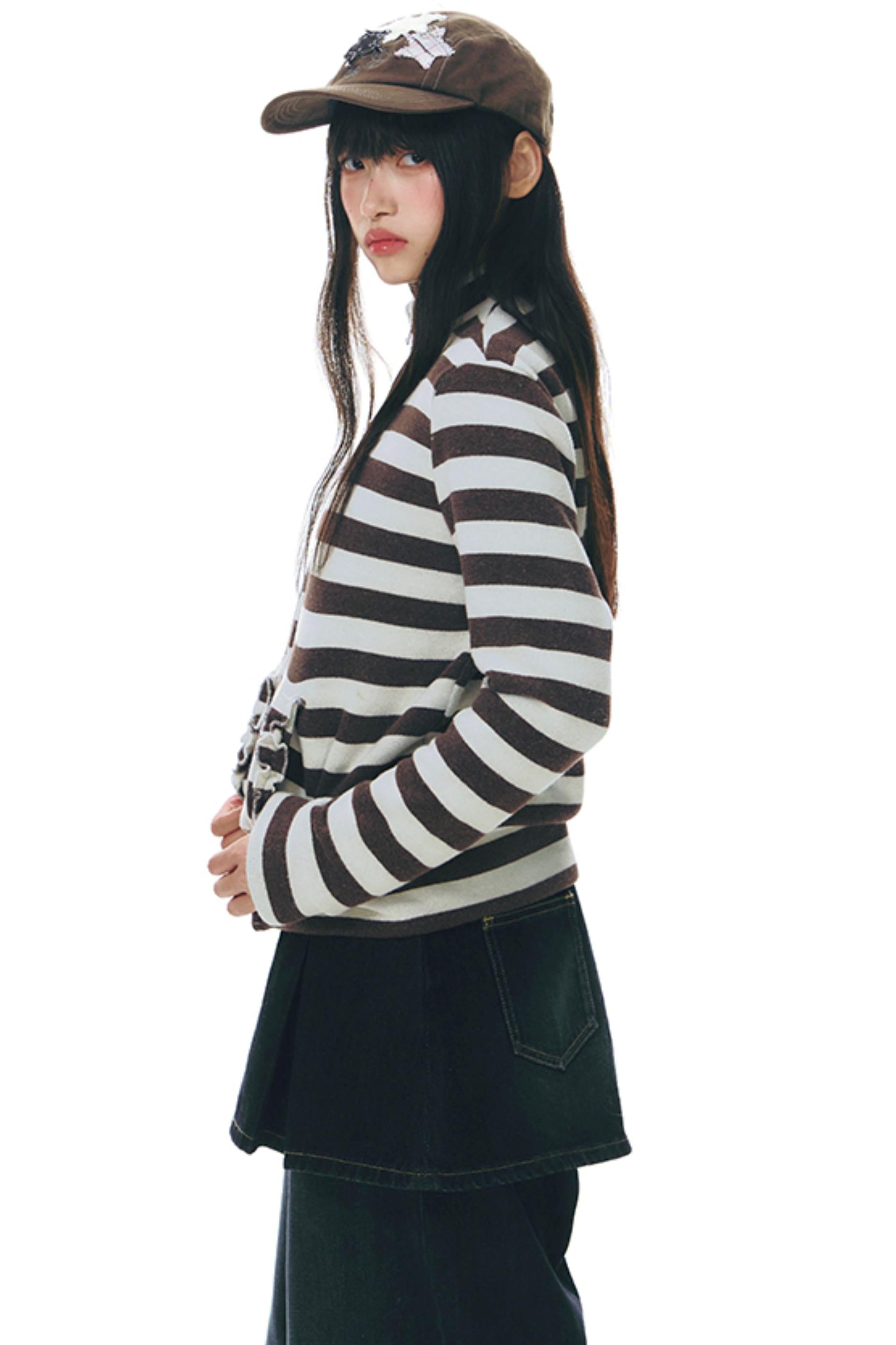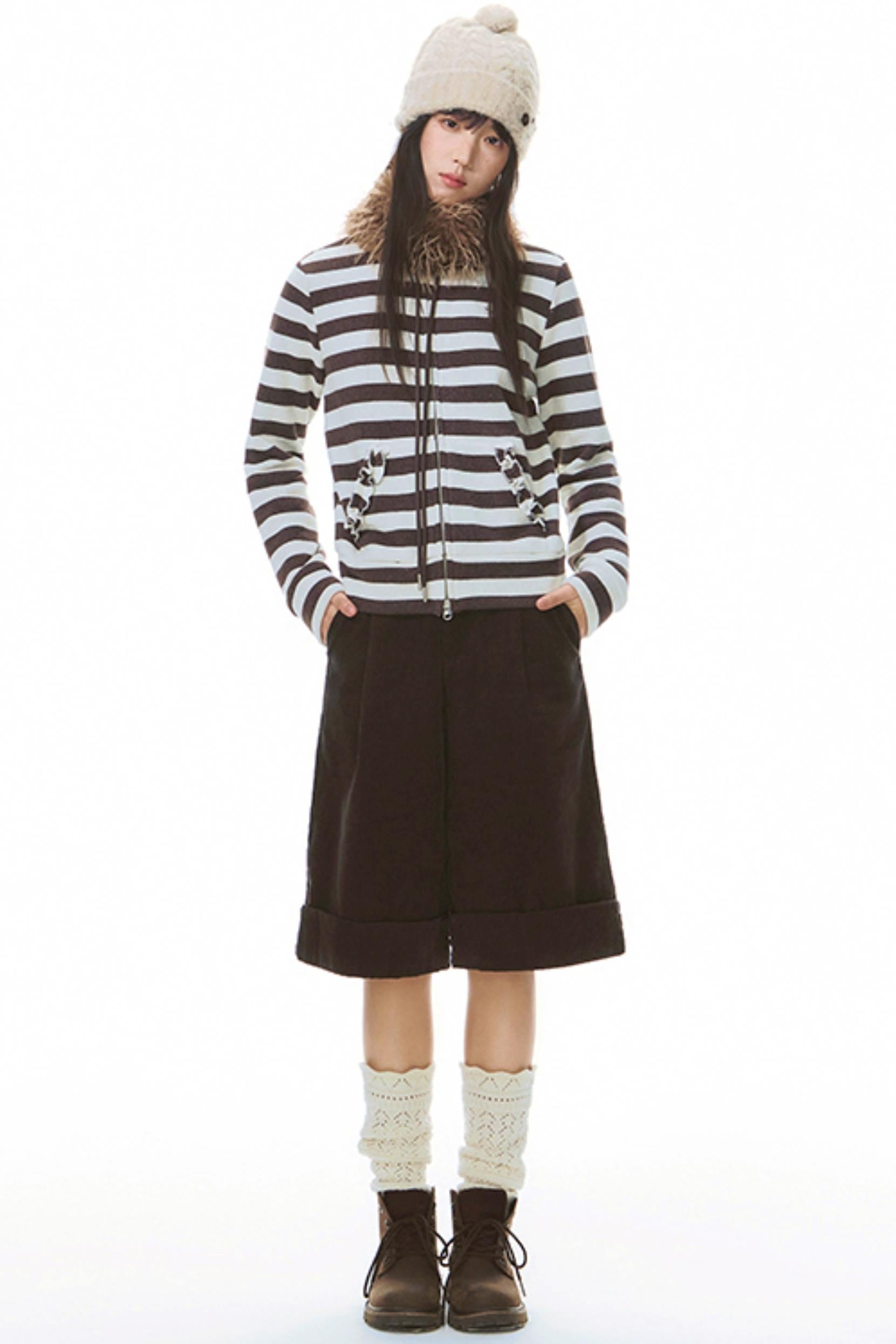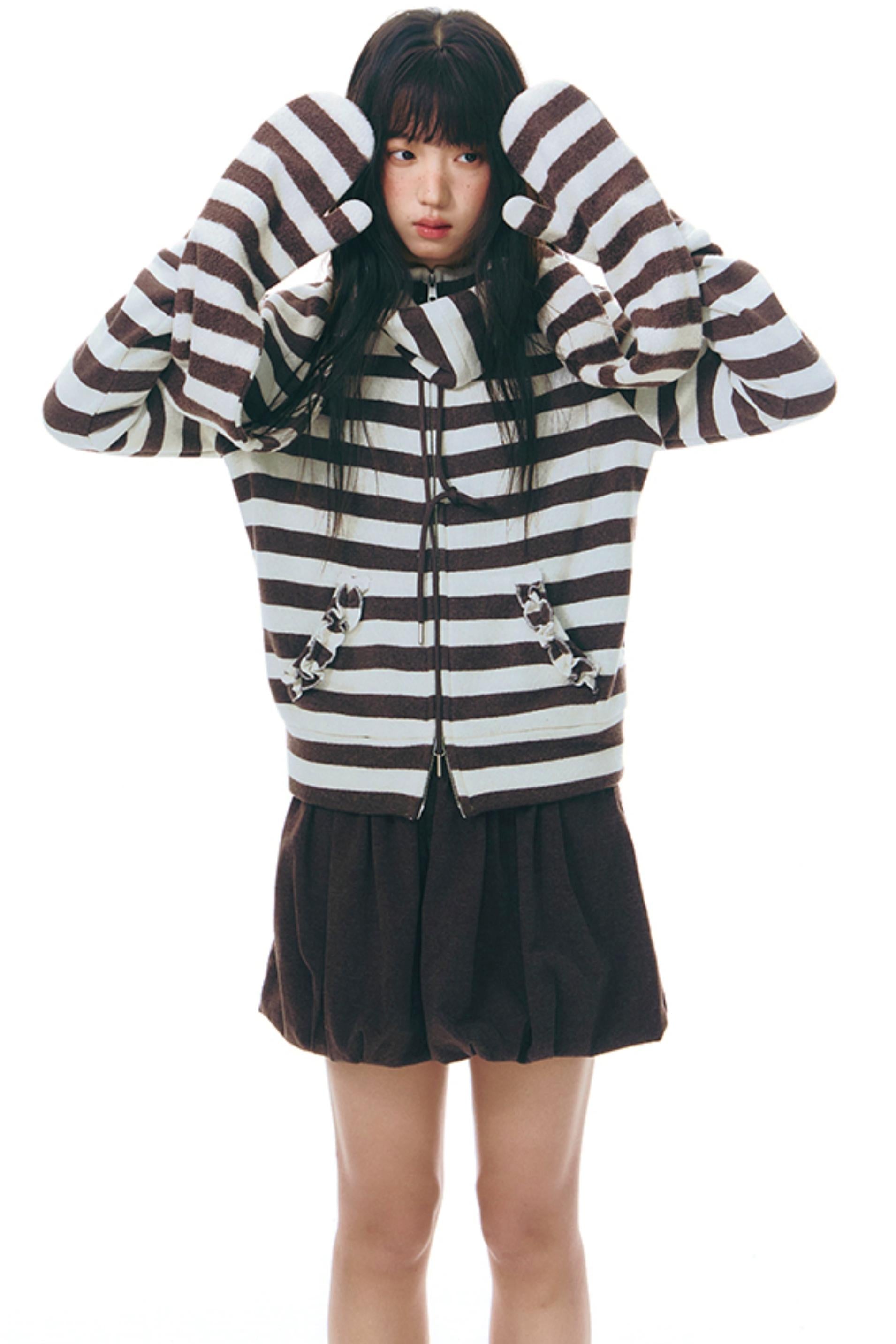 Stand-Up Striped Sweatshirt Jacket Set-Up