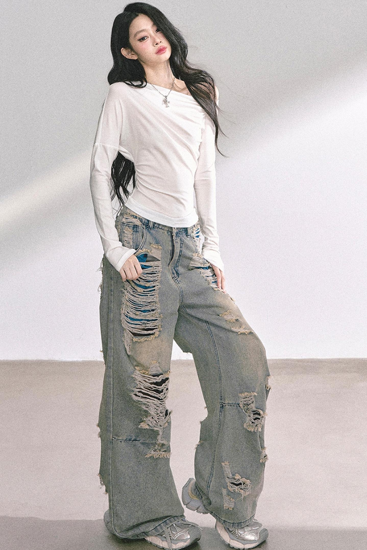 Straight Shoulder Long Sleeve T-Shirt