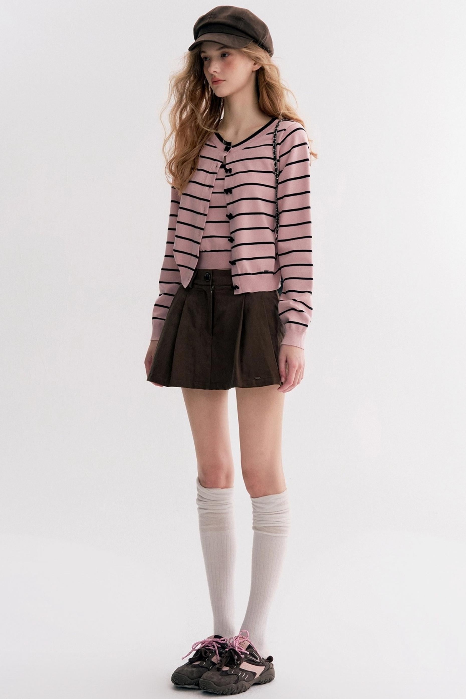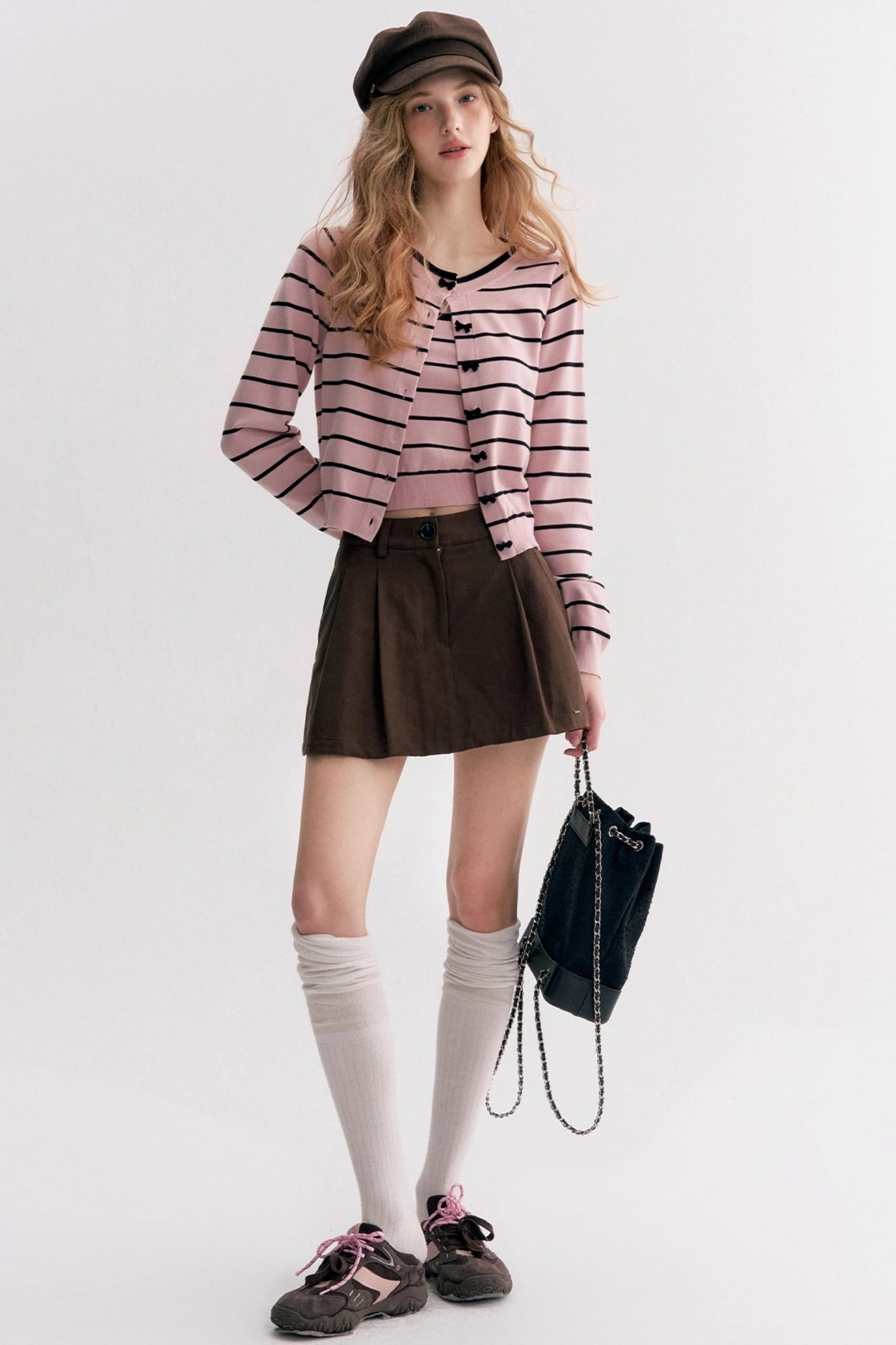 Striped Knit Suspender Cardigan & Top Set