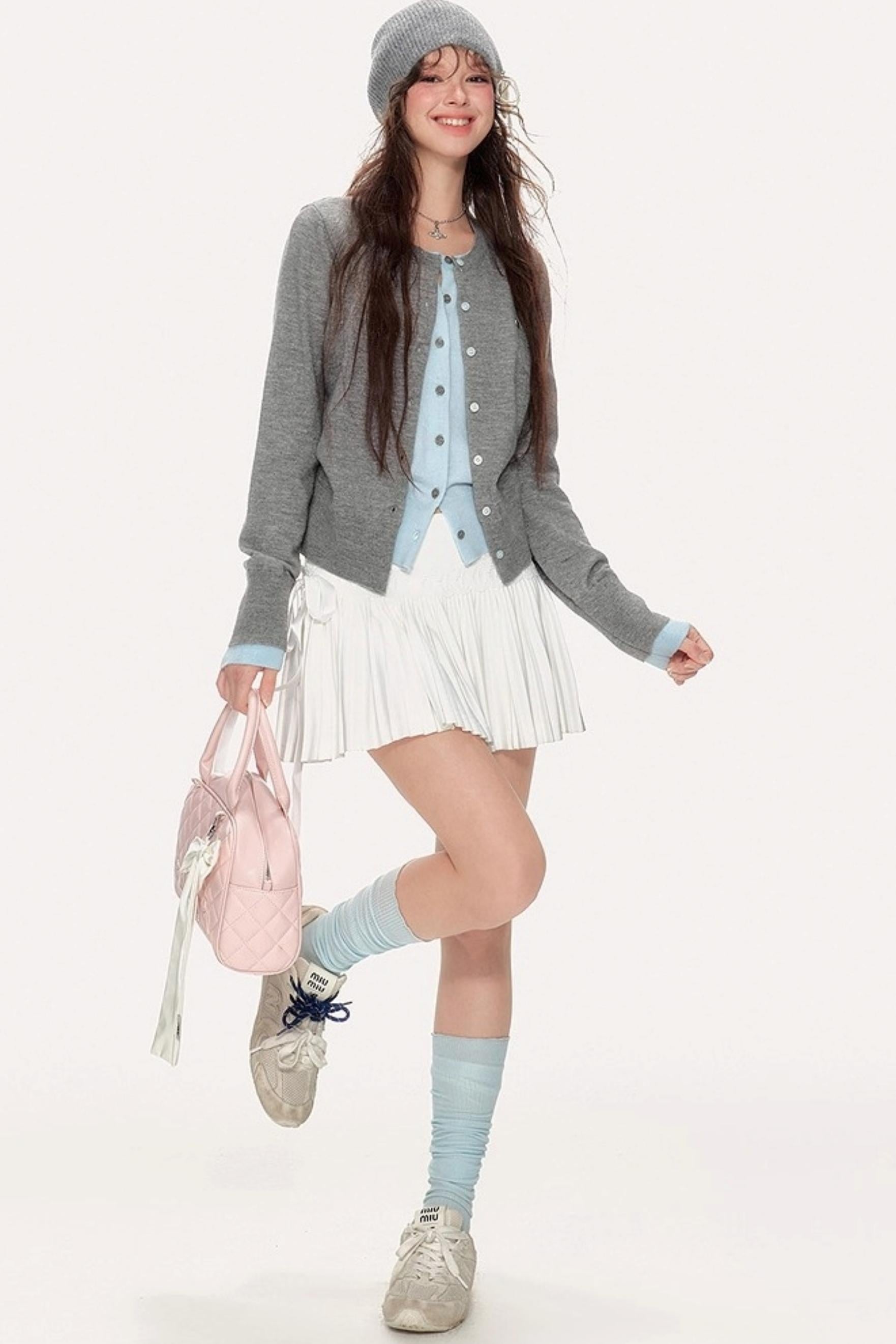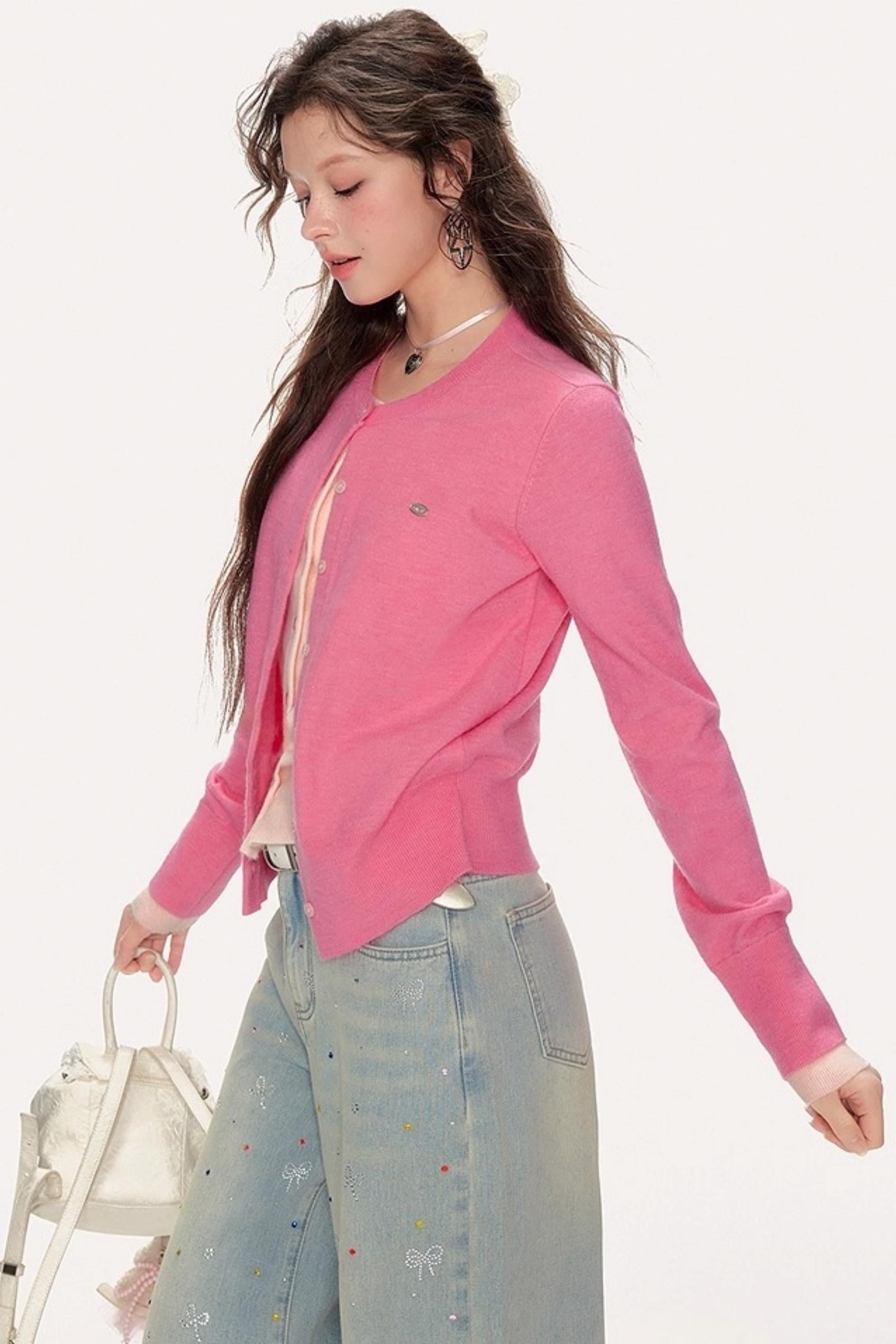 Sweet Girly Contrast Knitted Cardigan