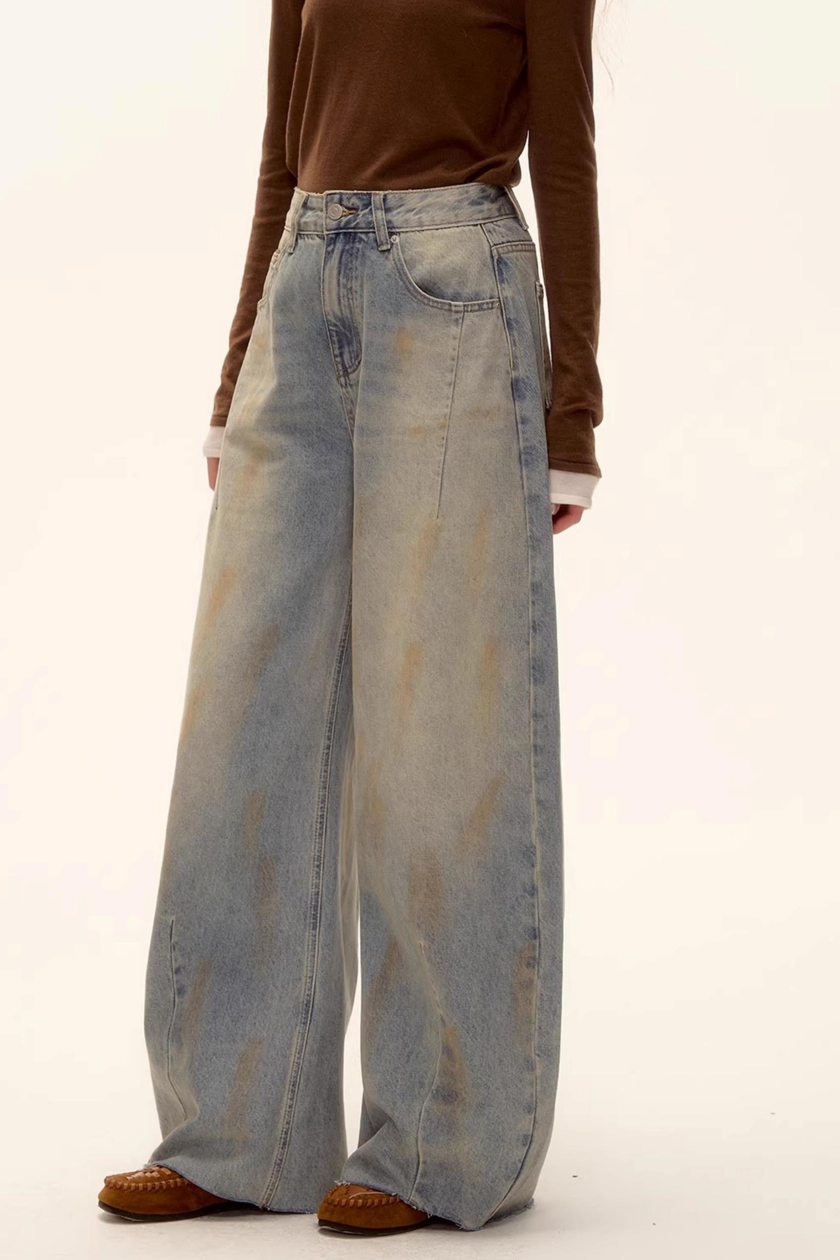 Vintage Washed Distressed Denim Pants