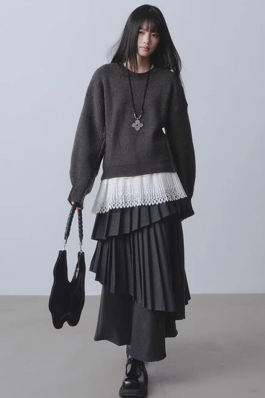 Lightweight Knit Shawl Turtleneck Sweater Set