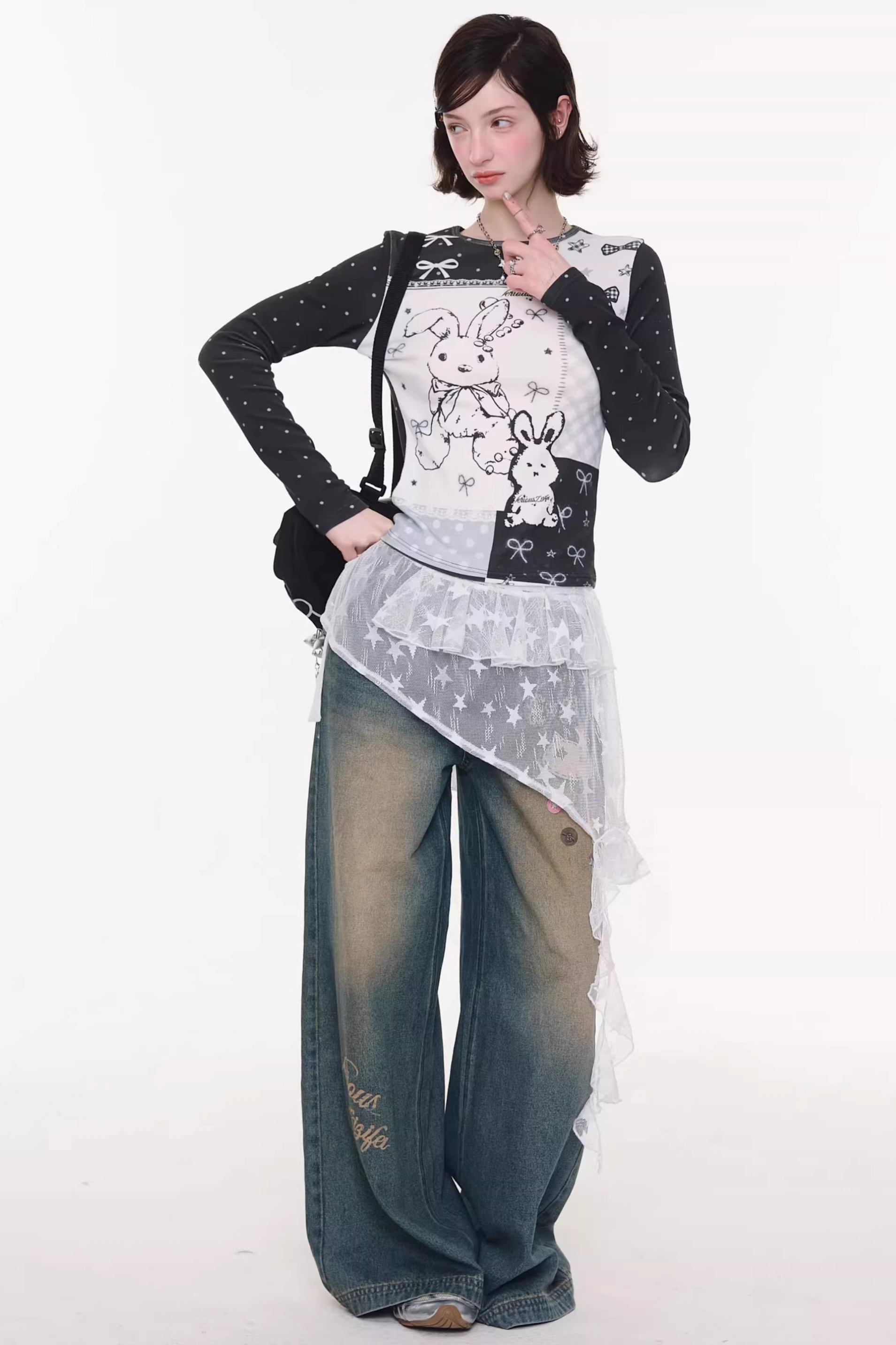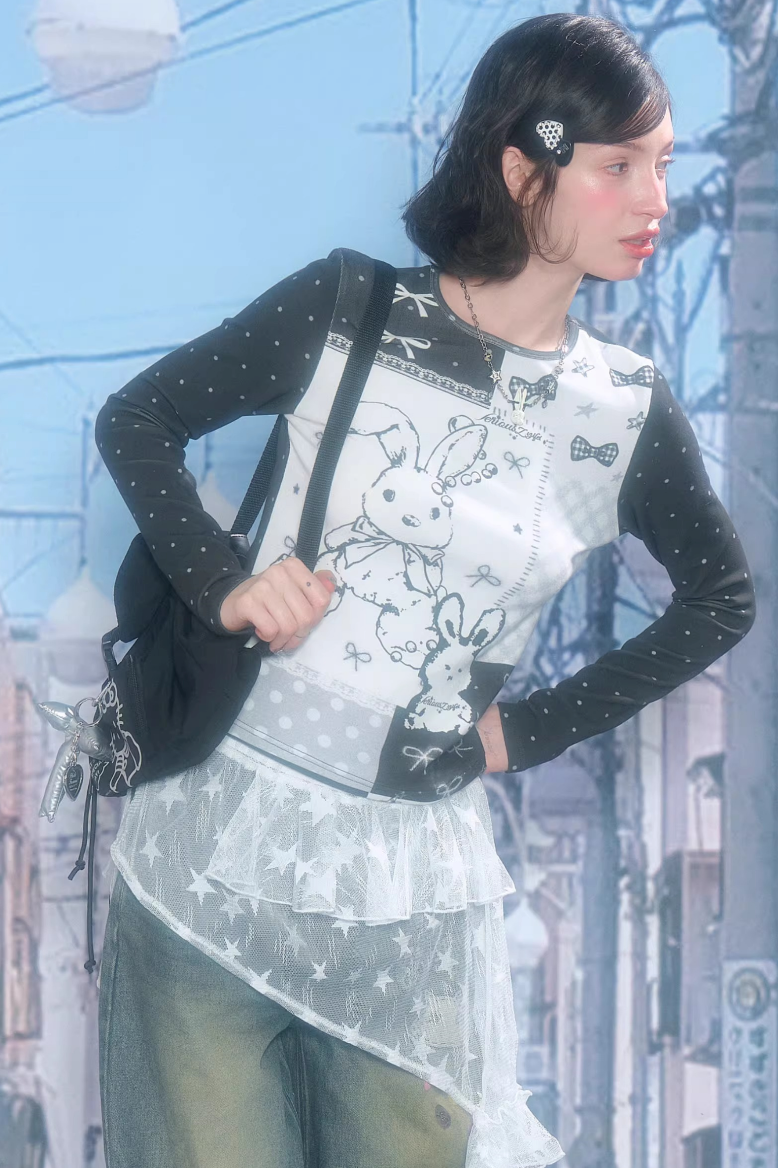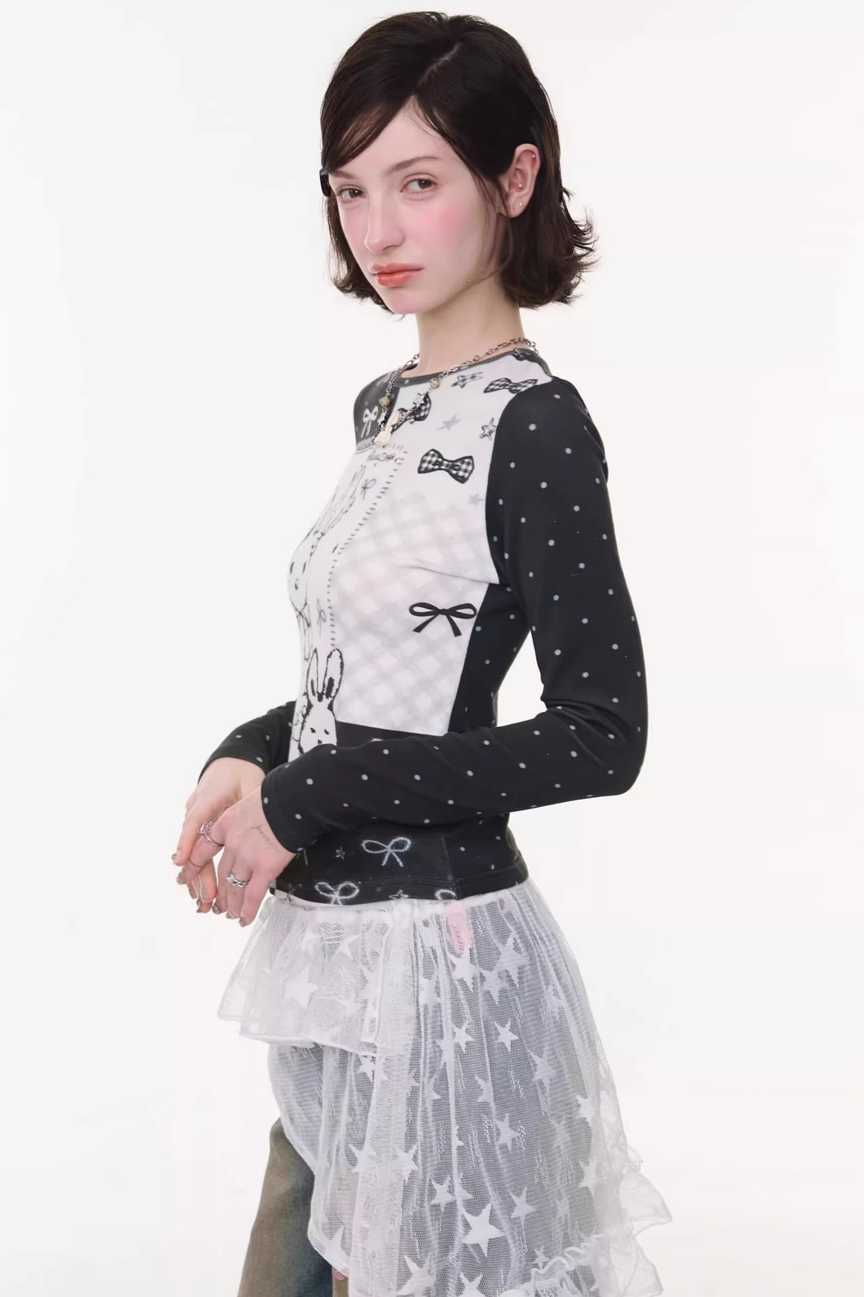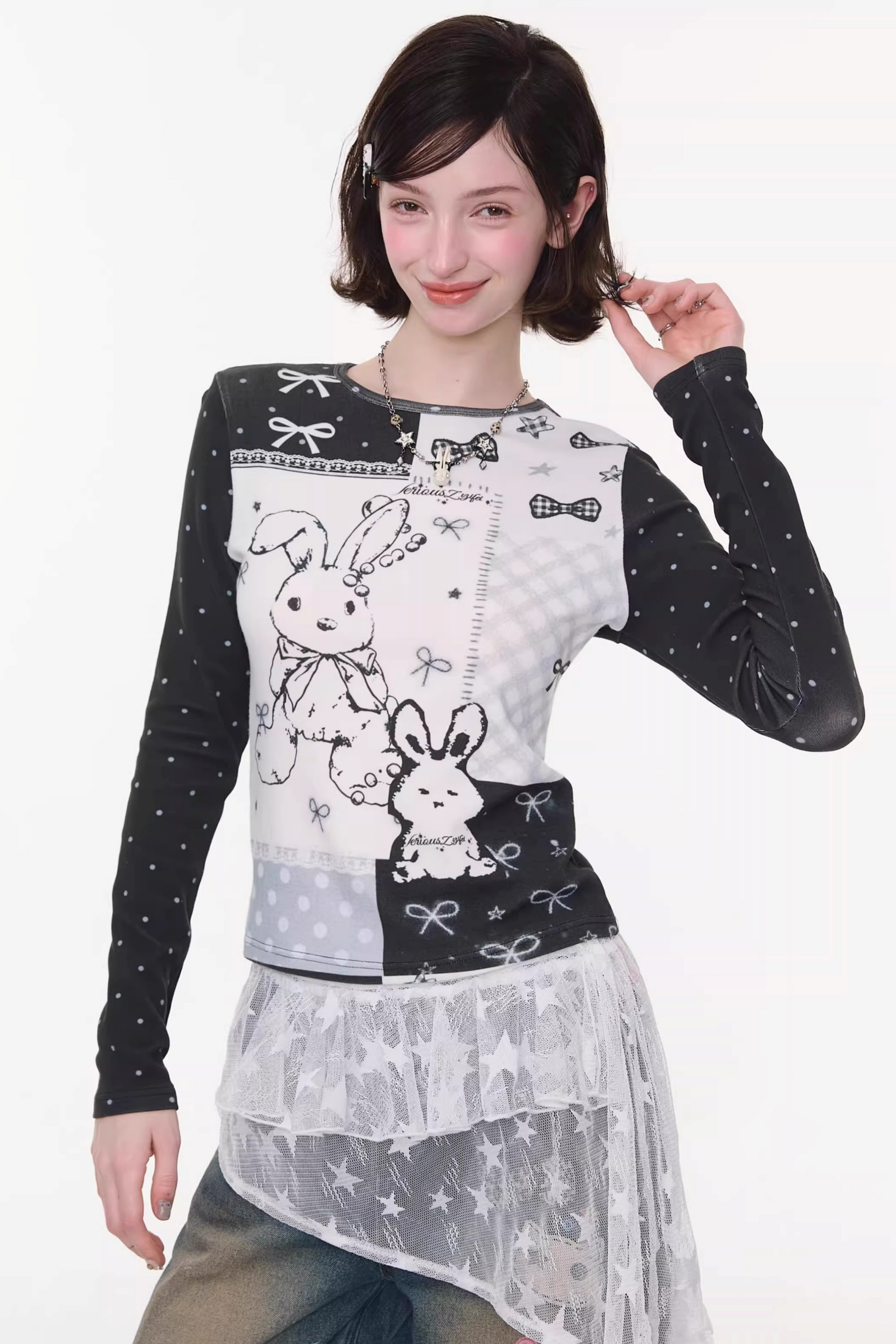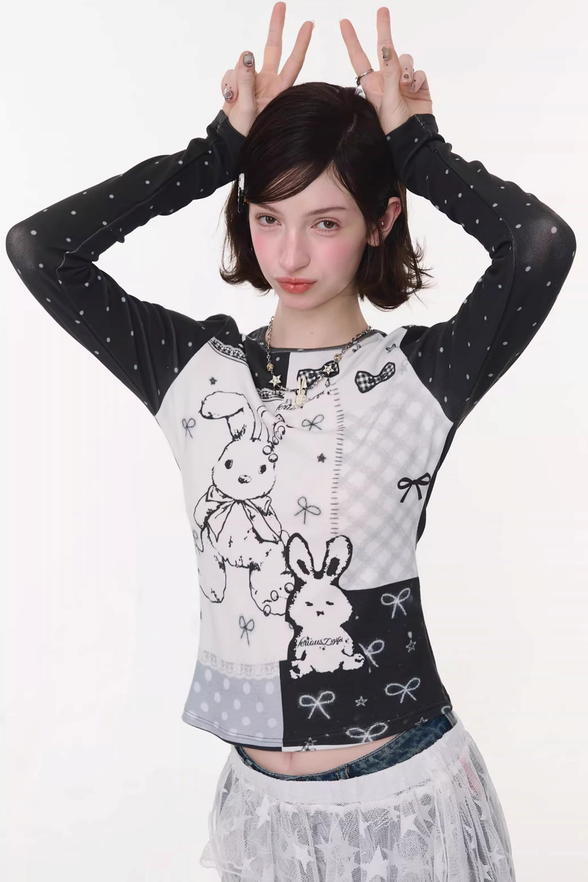Contrast Bow Rabbit Top