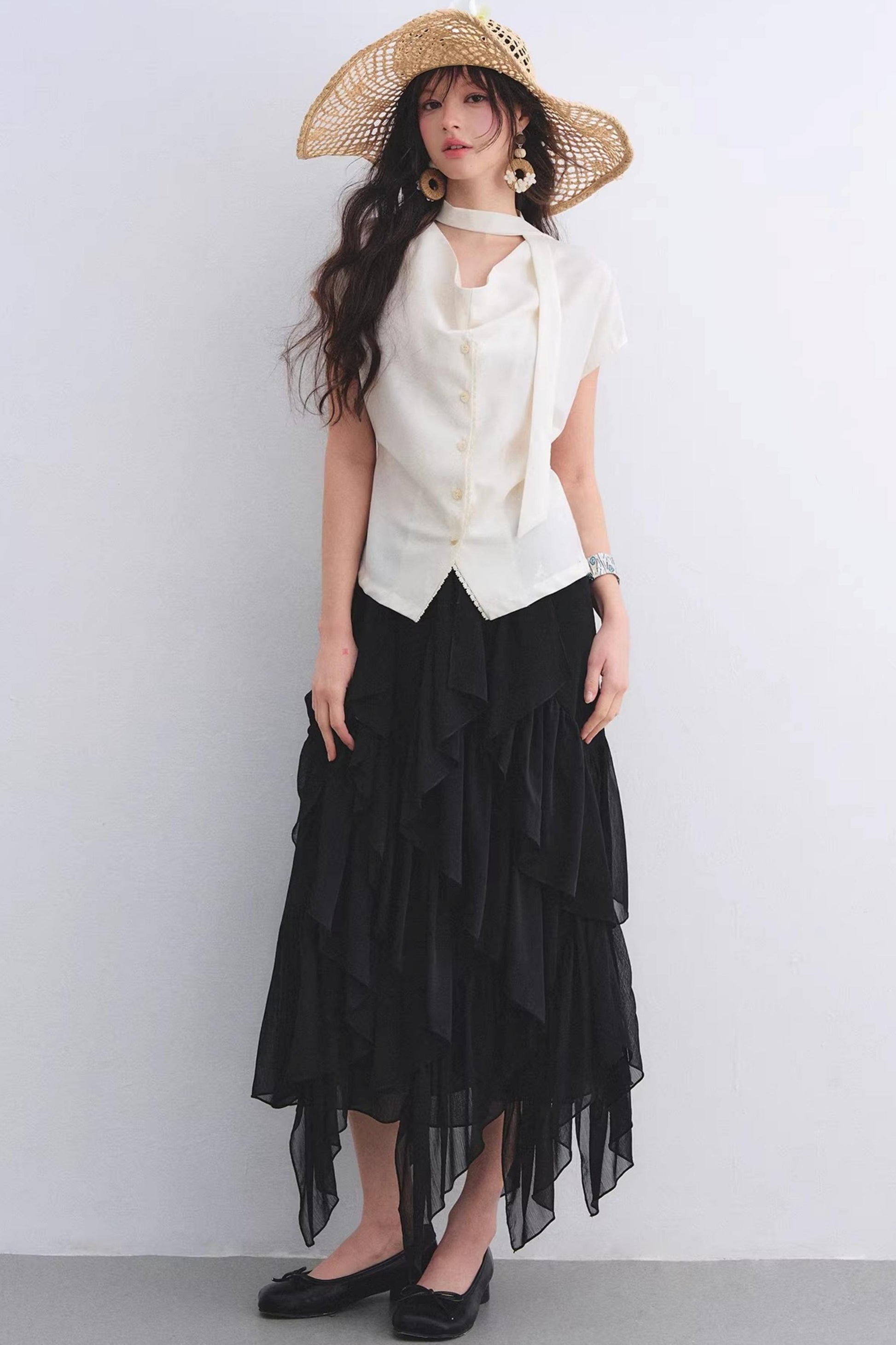 Irregular Ruffled Elastic Chiffon Skirt