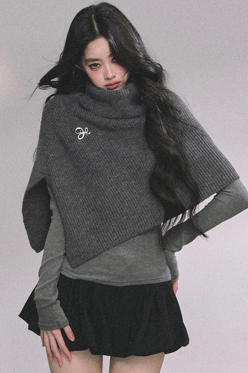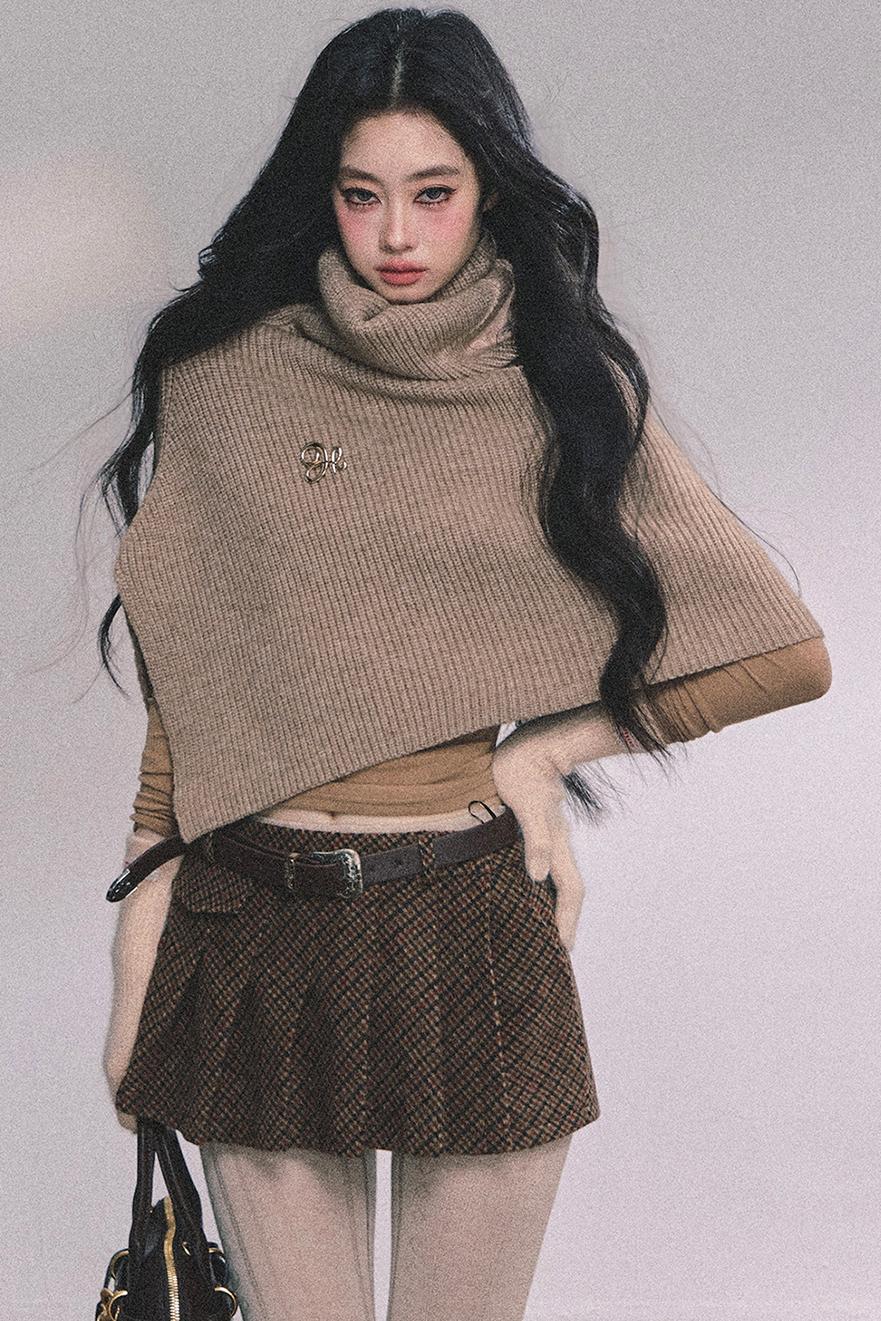 Lightweight Knit Shawl Turtleneck Sweater Set